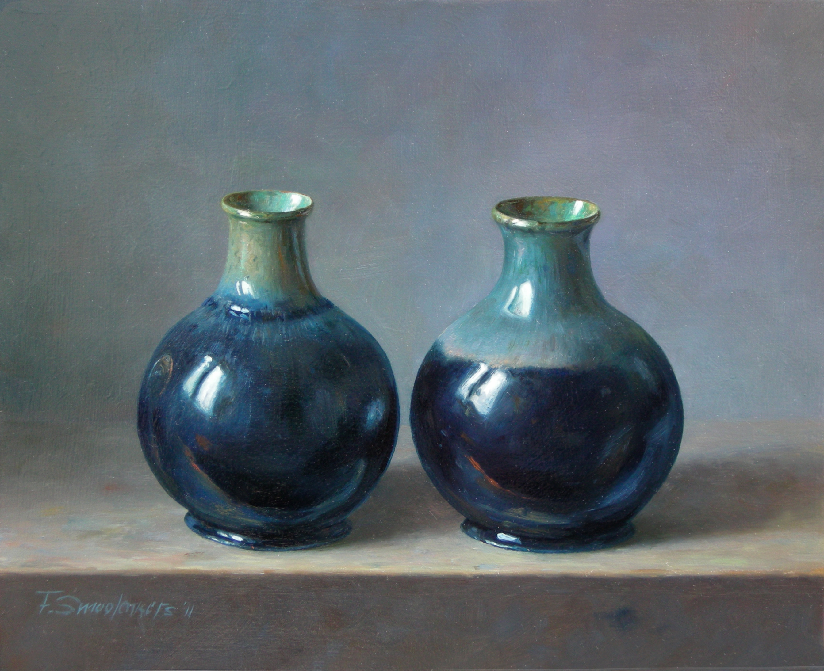 Schilderij Blauw Twee Art Olieverf Kunst Stilleven Duo Aardewerk Paar Stillife Potjes Vaasjes Ah Fred Kruikjes Mobach Soja 1918