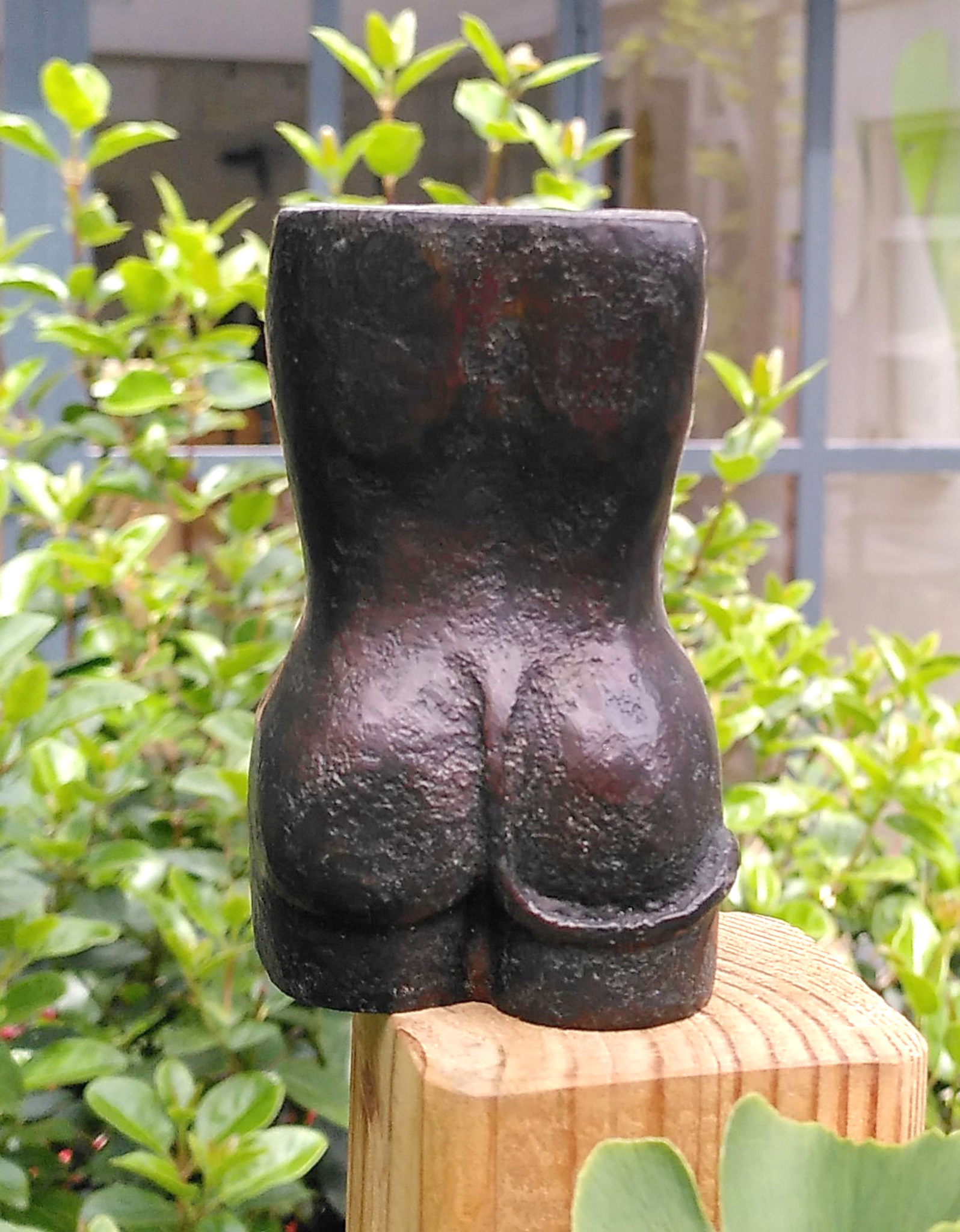 2e gietsel van de kleine Elephemme-tors, donker gepatineerd op houten sokkel
