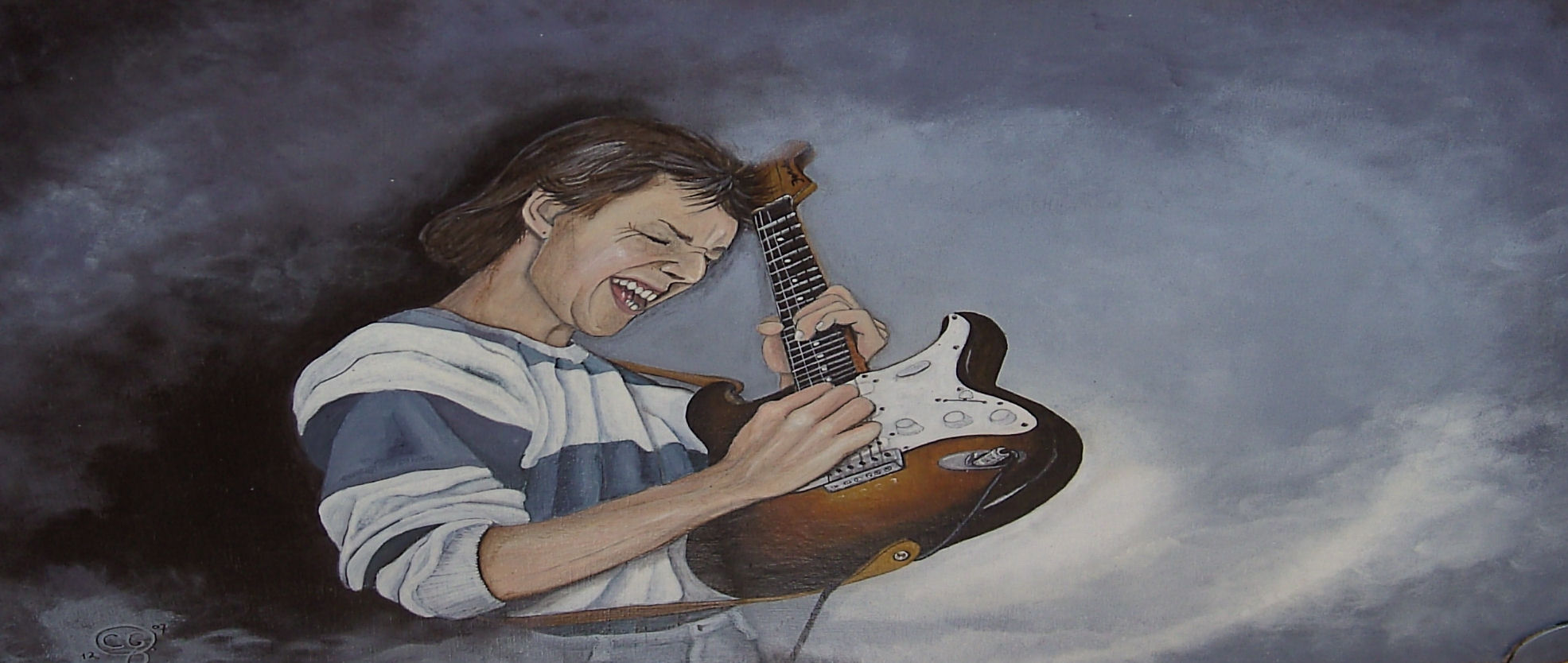 deze fantastische gitarist is Gudron Brun en hier te zien in volle aktie