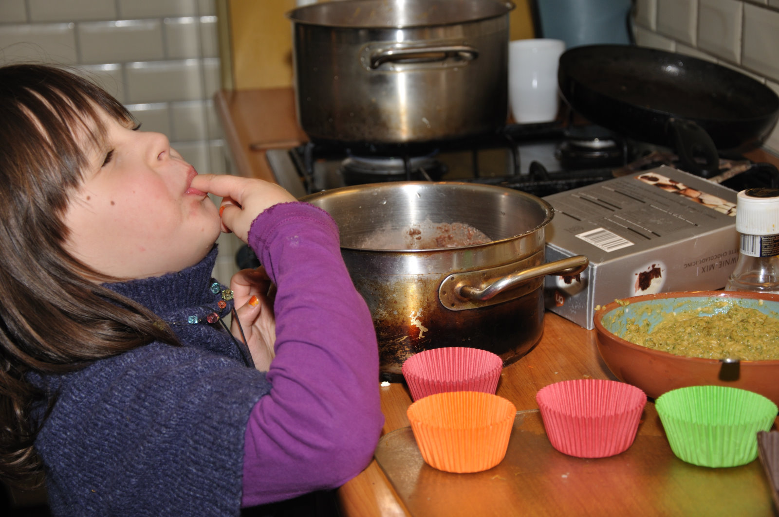 Meisje Kind Eten Keuken Lekker Chocolade Proeven Gebak Bakken Cake Muffins