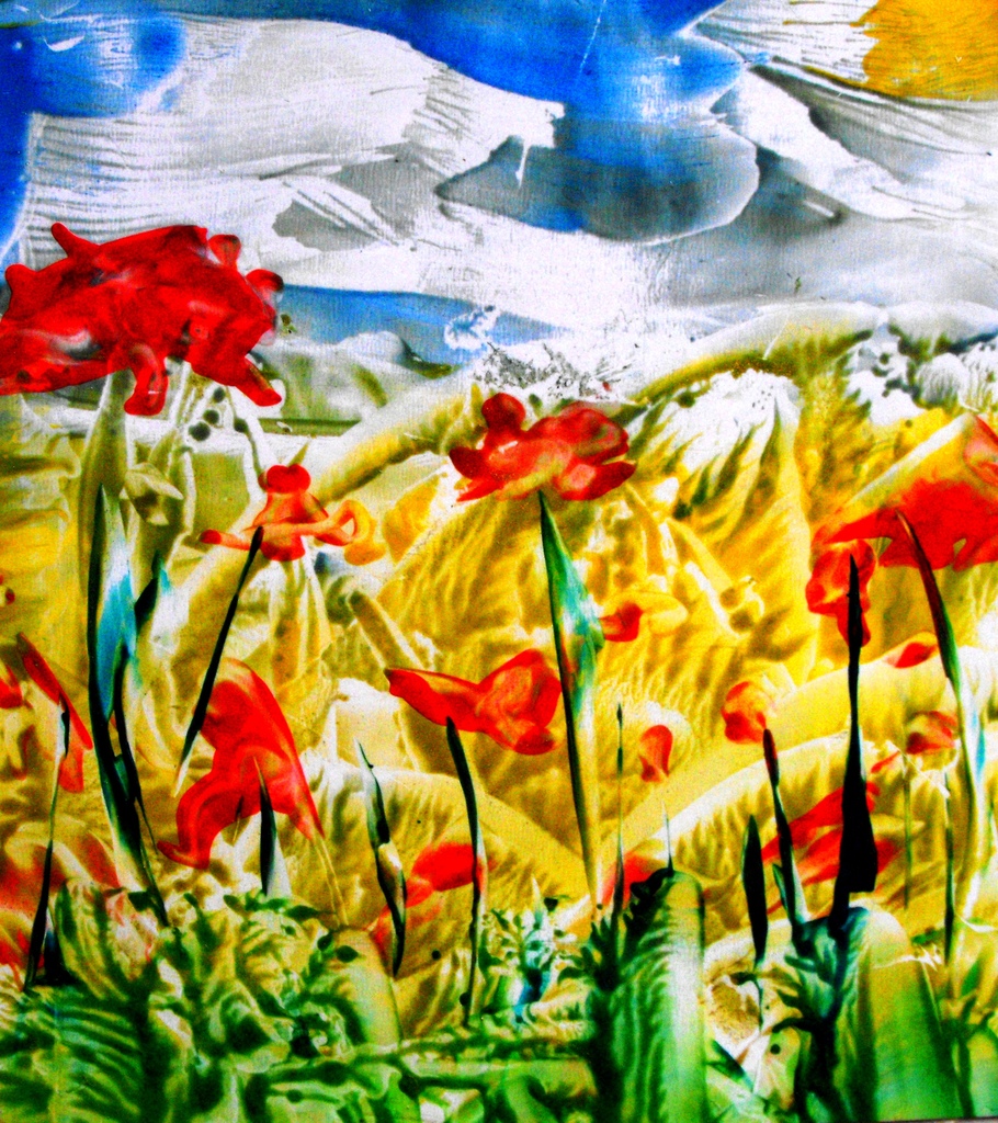 Landschap met bloemen en lucht. als ansichtkaart te bestellen via 'contact' kunstenaar