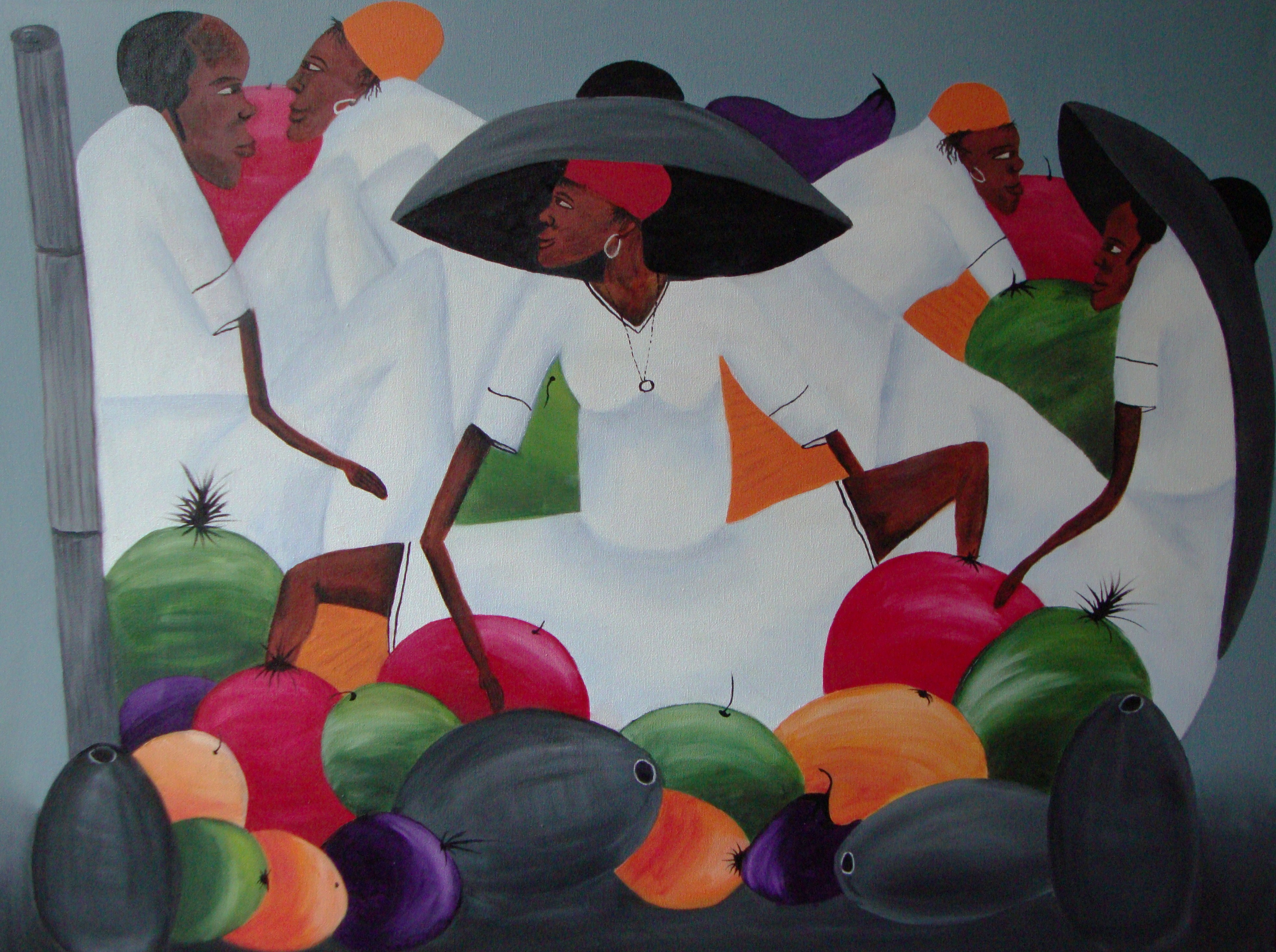 In 2010 naar Costa Rica geweest en heb dit toen geschilderd, het is een groepstafereel van mensen die aan het werk zijn.
