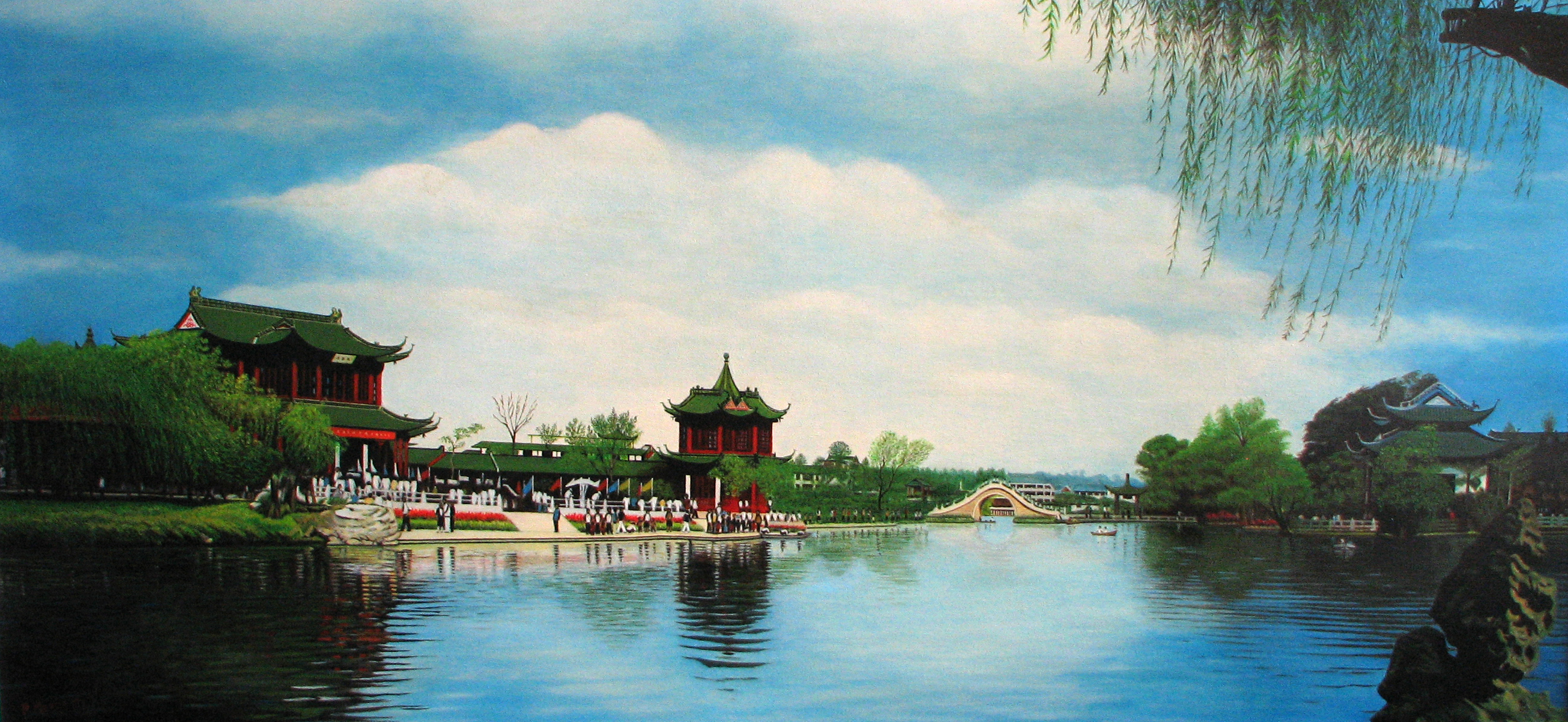 Zomerpaleis van de laatste keizer van China bij Guilin. Dit schilderij is voorzien van een zeer mooie lijst.