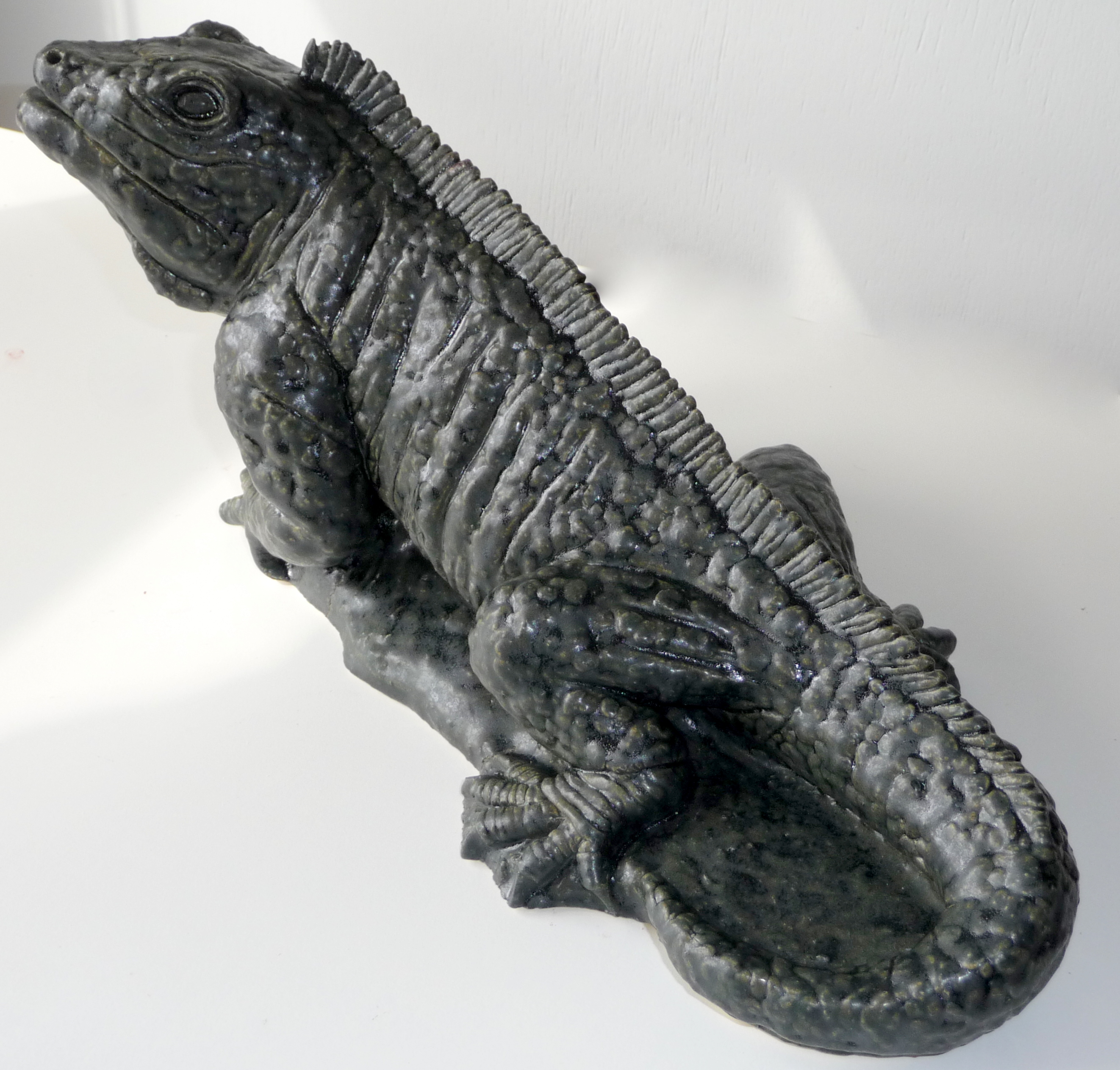 leguaan, handgevormd, gestookt op 1220°, steengoed