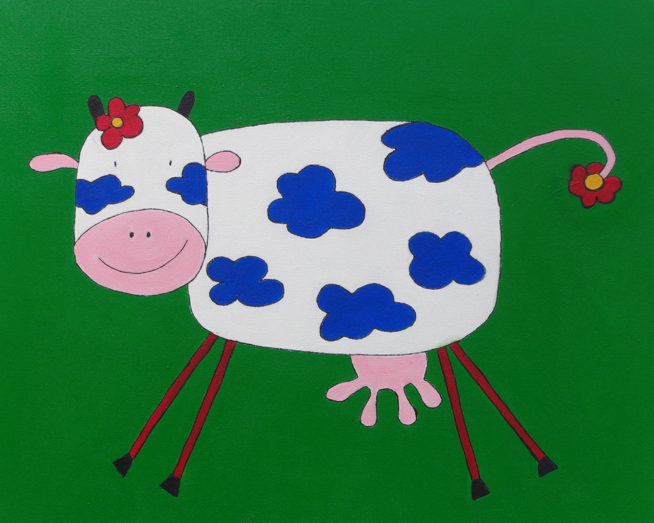 zie hoe vrolijk, zie hoe blij, de lente koe mag eindelijk in de fris groene wei