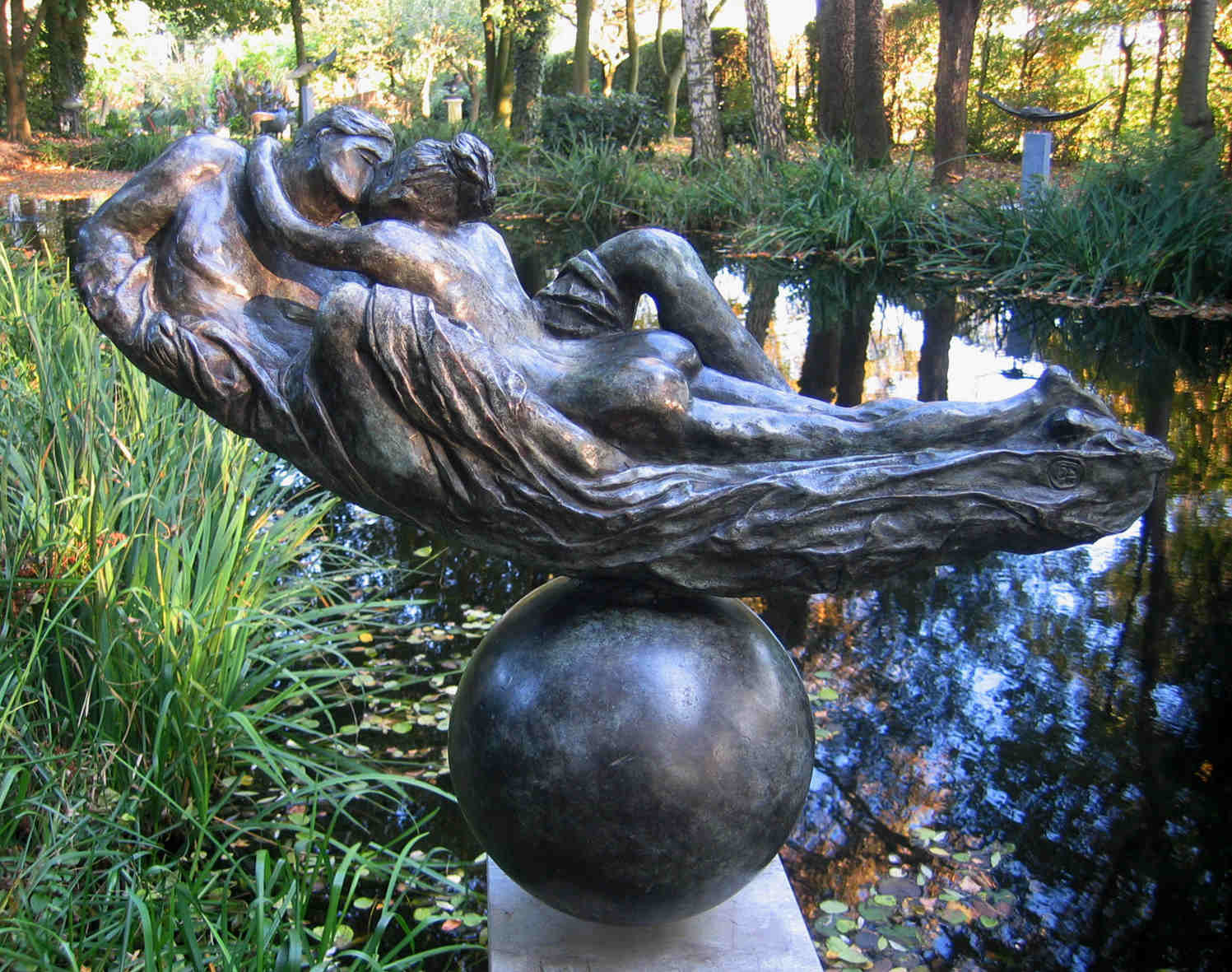 Het beeld “de zevende hemel” verbeeld het gelukzalige gevoel waarmee 2 geliefden de aardbol kunnen ontvluchten. In die hemel is geen plaats voor de minder mooie werkelijkheid op deze wereld. Daarom staan de 2 geliefden boven de als bol weergegeven aarde De creatieve inspiratie van Paulette is een vlucht uit de werkelijkheid die zich uit in droombeelden zowel in haar beelden als schilderijen. Haar thema is vaak de verbeelding van beweging, muziek en mythen, maar evenzeer de vrouw die liefheeft, ongrijpbaar is en transparant in haar wezen