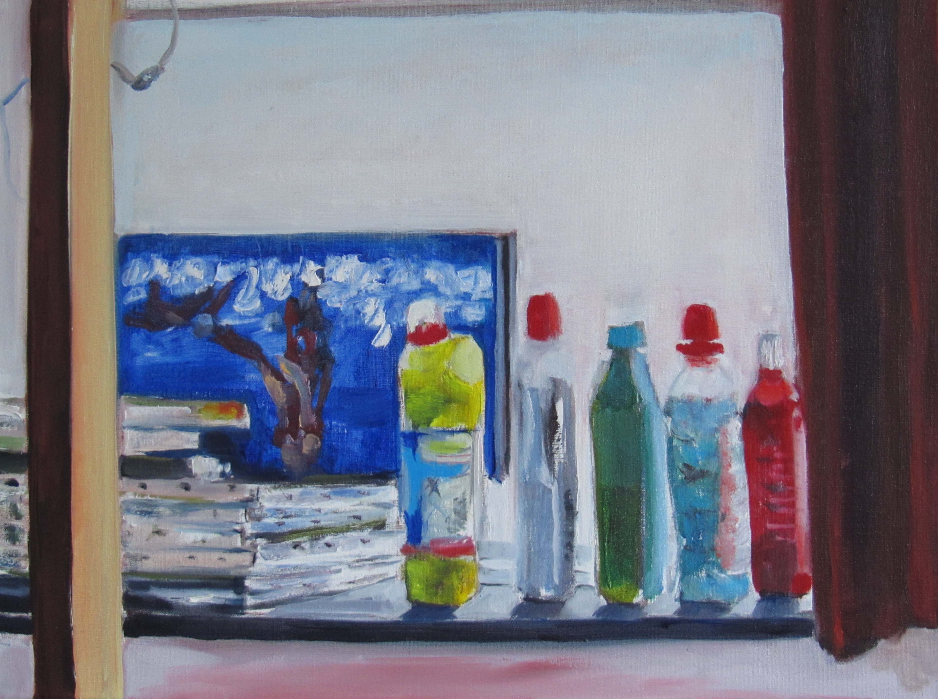 in een schildersatelier is vanalles te zien, schoonmaakmiddelen, lekker kleurig.