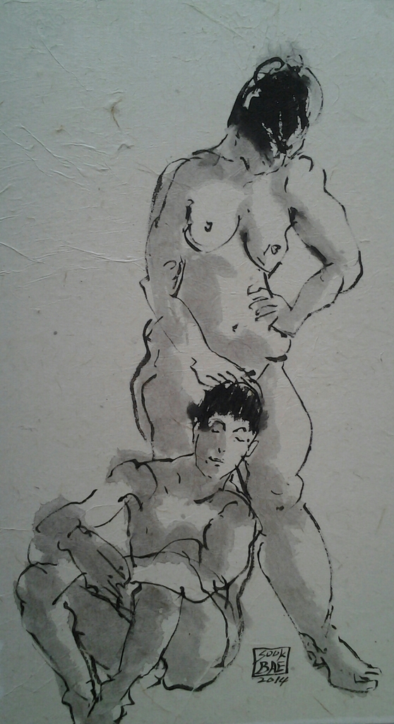 Sook Bae(1959)is in 1980 afgestudeerd aan de young nam college(Toegepast kunsten) in zuid-korea In 1996 volgde zij modeltekenen aan de Grand Academie te parijs Sins 1997 woont ze in Amsterdam. "ik teken en schilder direct naar model Het onderwerp dat my blijvend inspireert is de mens; poserend of bezig met alledaagse dingen, De techniek van het tekenen is sumi-e is mijn grote Liefde. Als ik goed bezig ben, werken mijn ogen en handen Samen en is mijn hoofd leeg; het voelt als een Meditatie"