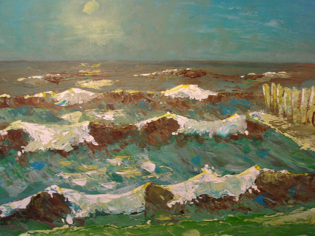 Woelige zee met strekdam.