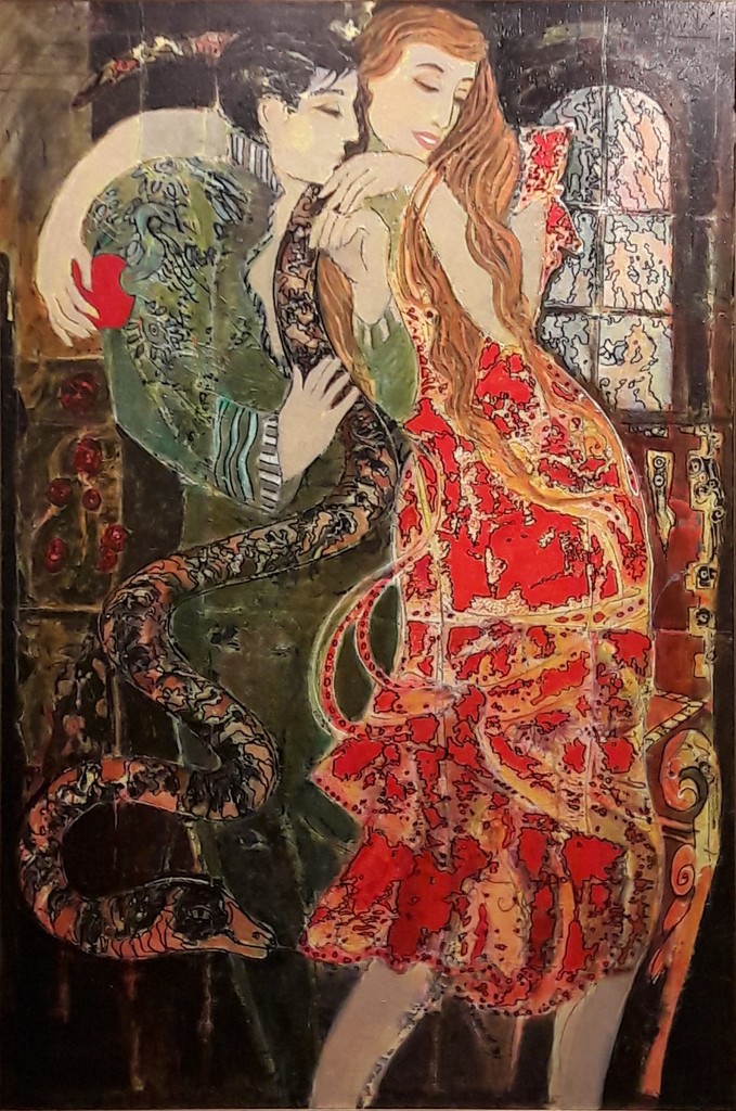 Schilderij Slang Adam Eva Snake