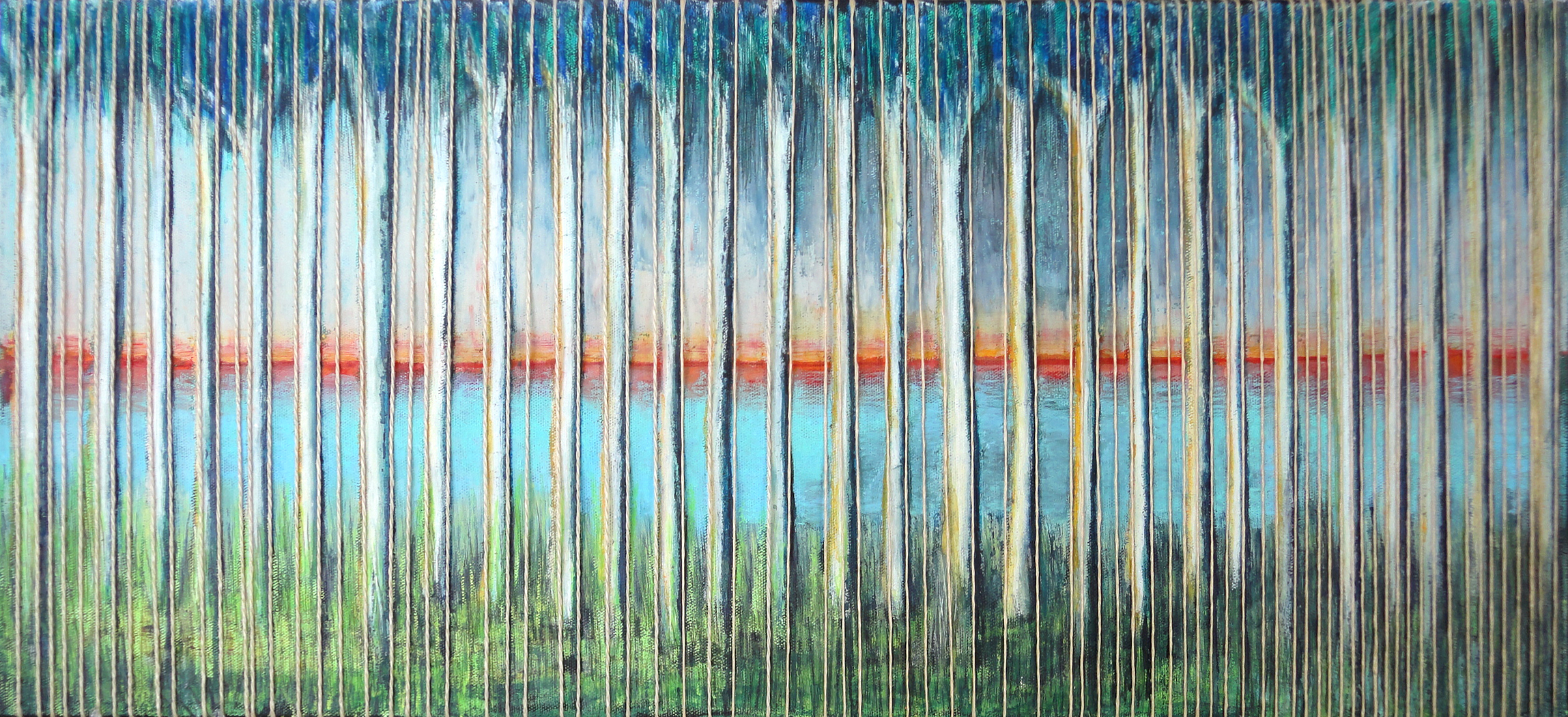 Blauw Groen Bomen Herhaling Lucht Gras Touw Ritme Rij Horizon Verticaal Gordijn Sluier