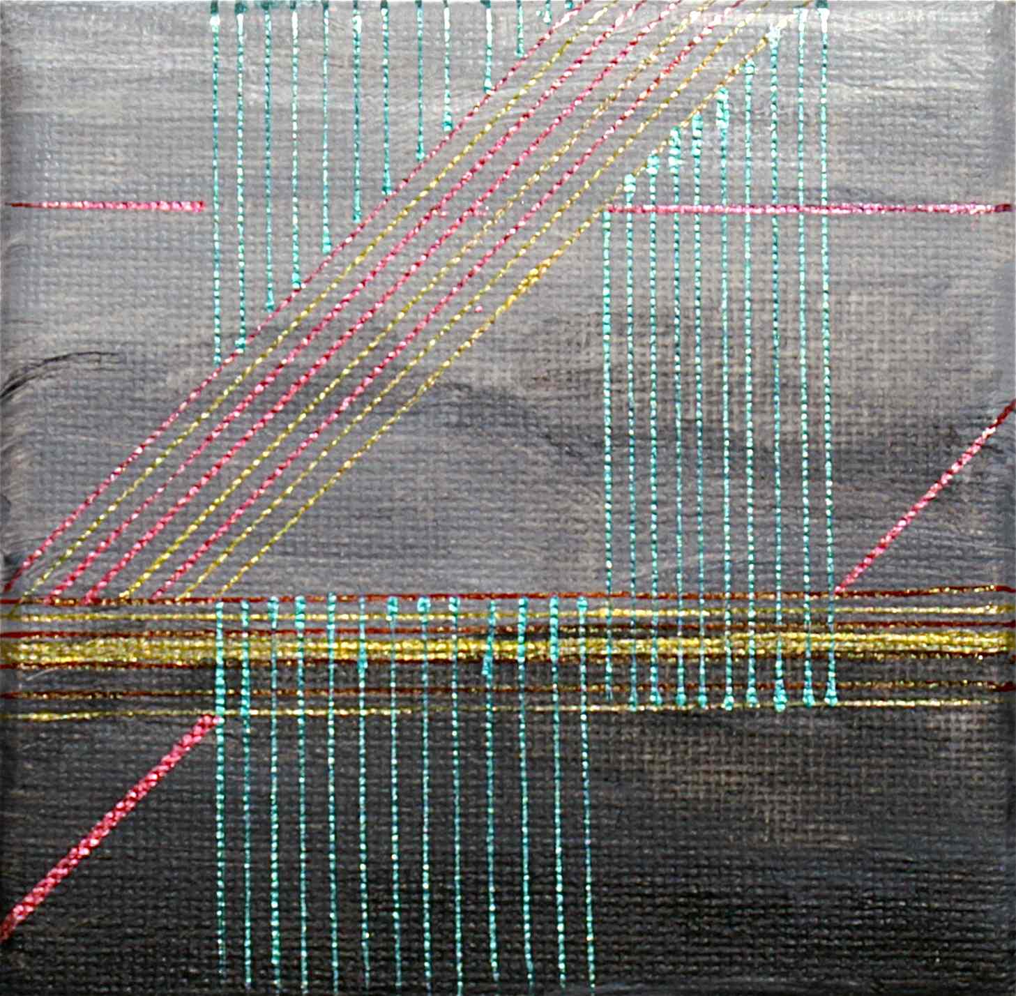 5 in een serie van 5 geometrisch patroon (met pen) op gemêleerde achtergrond - contrast van strak op grillig