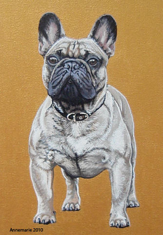 portret van een Franse Bull topper. Dit portret hangt samen met het portret van Bagheera de Engelse Bull, bij eigenares Ada van Wingerden.
