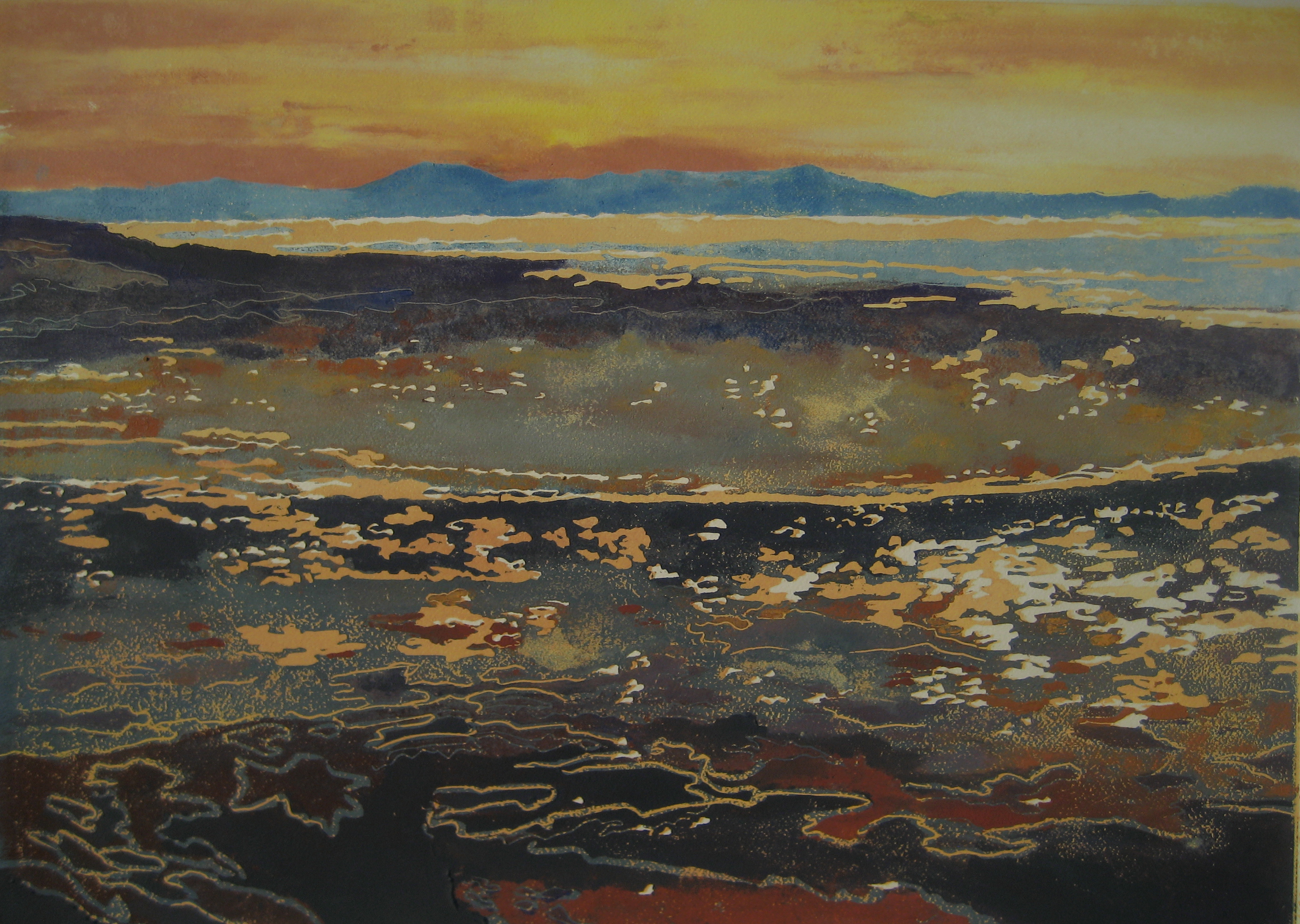 zand en water, avondlicht weerspiegeld Bestelinfo zie: informatiepagina Saskia Splinter.