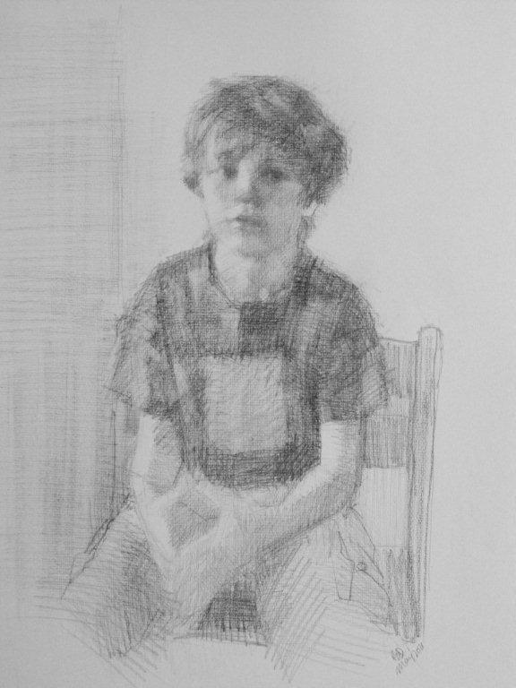 Boy Jonge Portret Tekening Stoel Sittend Seated Relaxed Drawing Sketch