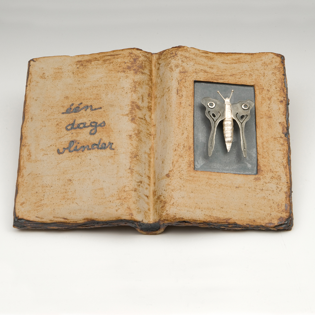 object (keramiek en zilver, 2007): boekje (14 x 19), broche (4 x 5.5 cm)