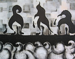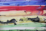 Aquareltechniek toegepast met acrylverf.