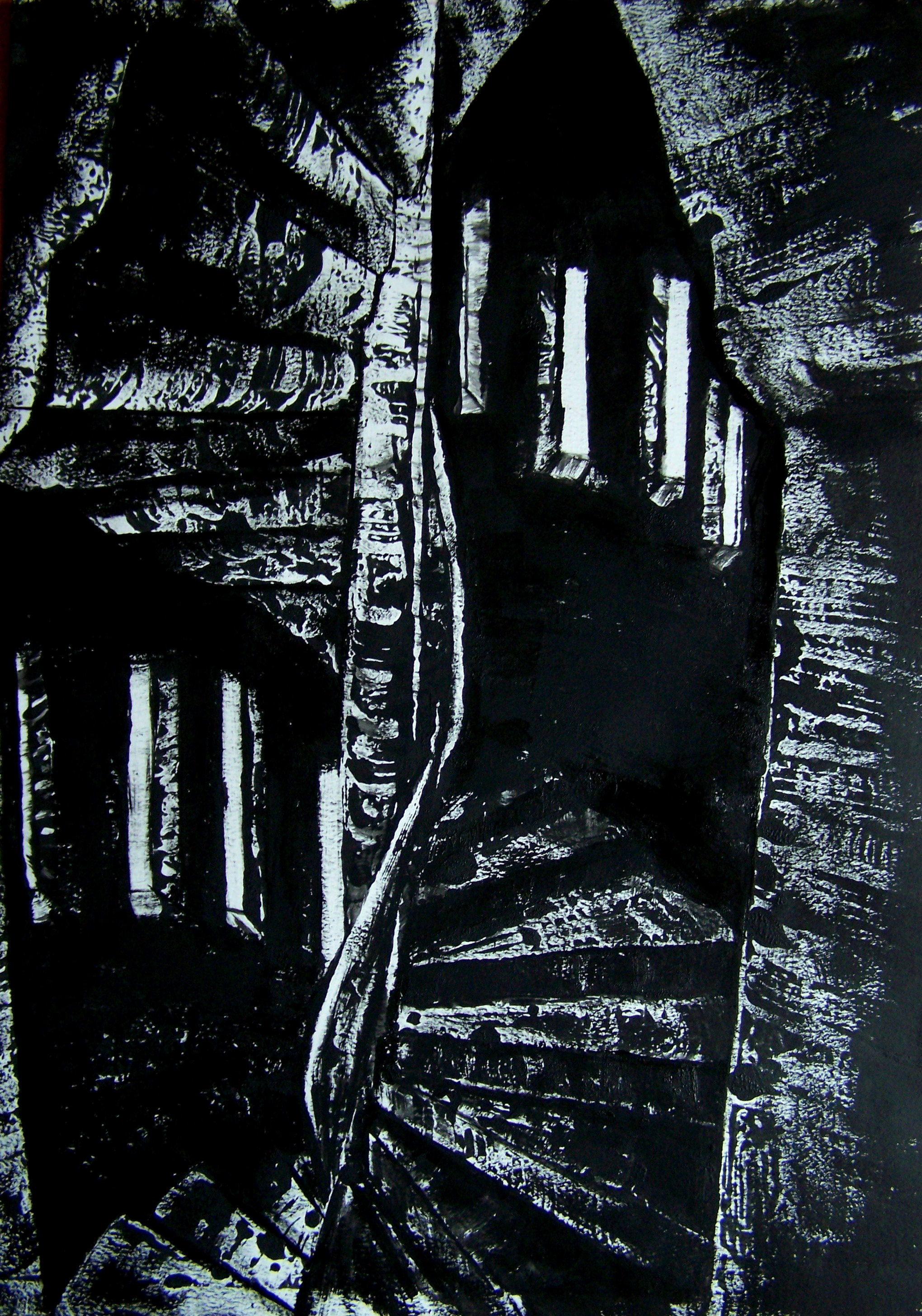 Monoprint; Een eenmalige afdruk van een geschilderde afbeelding vanaf een vlakke plaat. Met acrylverf heb ik extra accenten aangebracht in deze afbeelding.