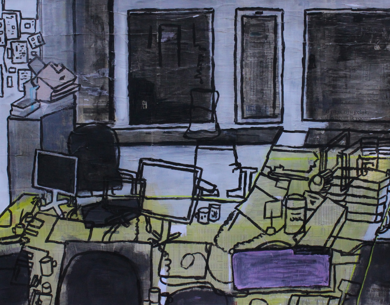 Ik ben Annelies van der Valk (1956). Mijn werk gaat over bebouwing, chaos en verval. De complexe ruimtes zijn meestal niet in een opslag te vatten.