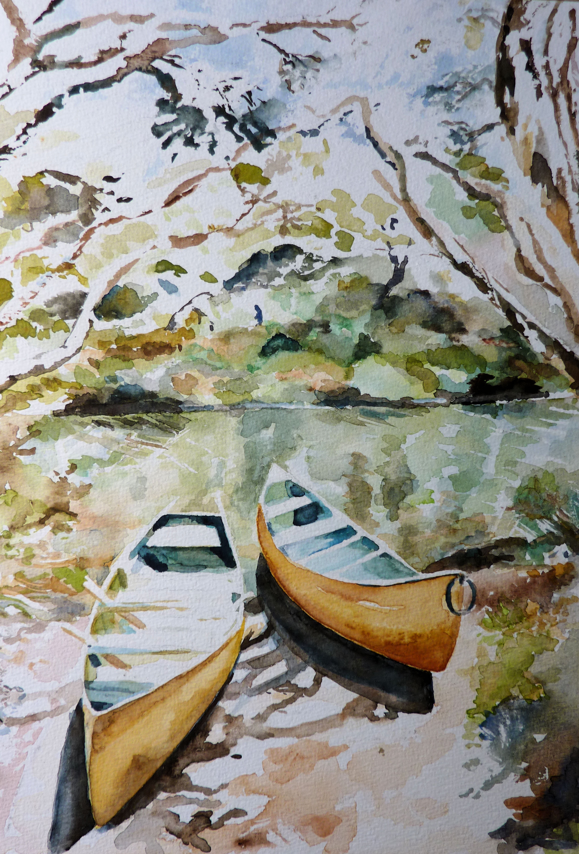 Groen Water Aquarel Natuur Wal Roeiboten Roeibootjes