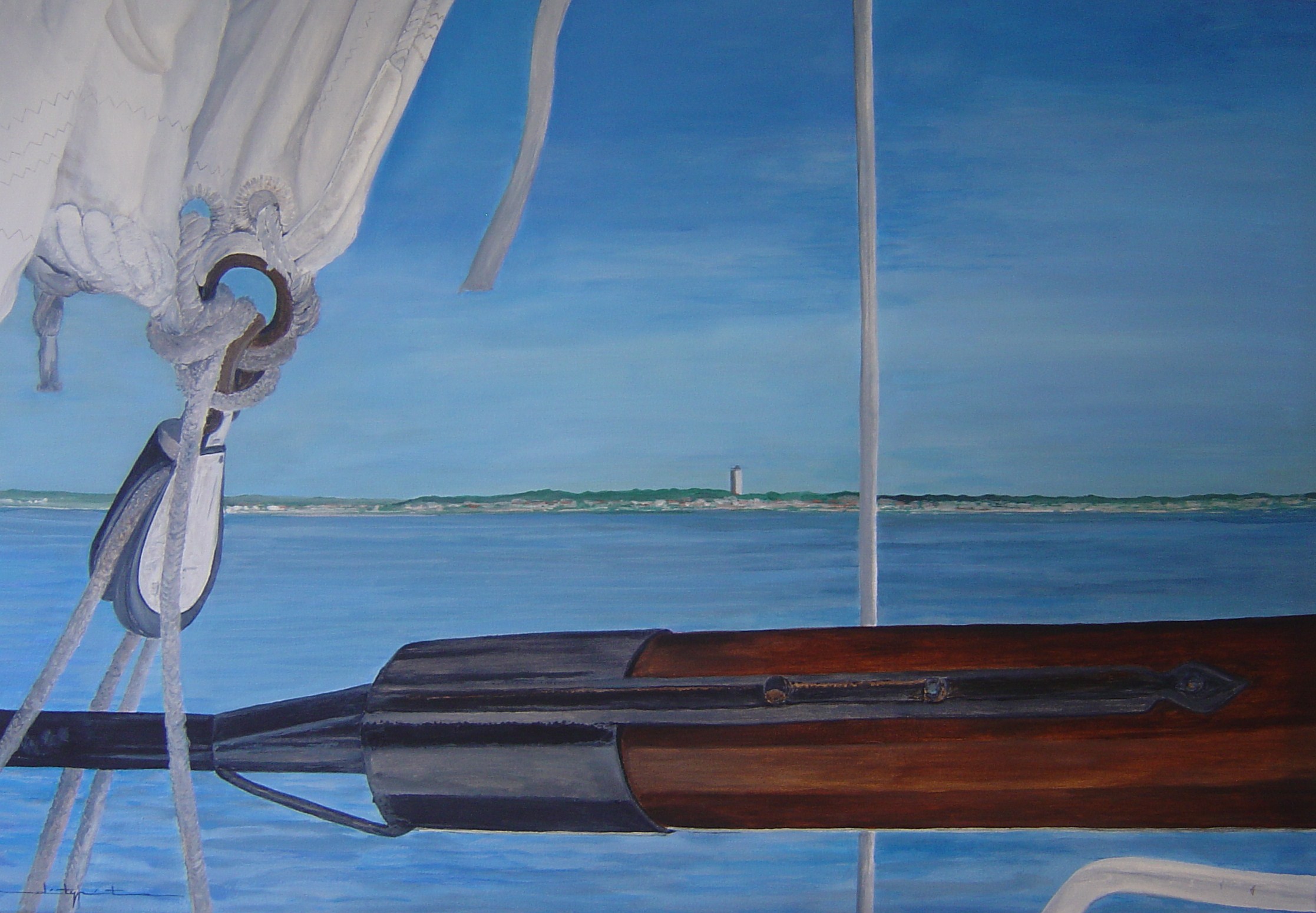Op het skûtsje dat heet : "Vertrouwen". Uitzicht op Terschelling.