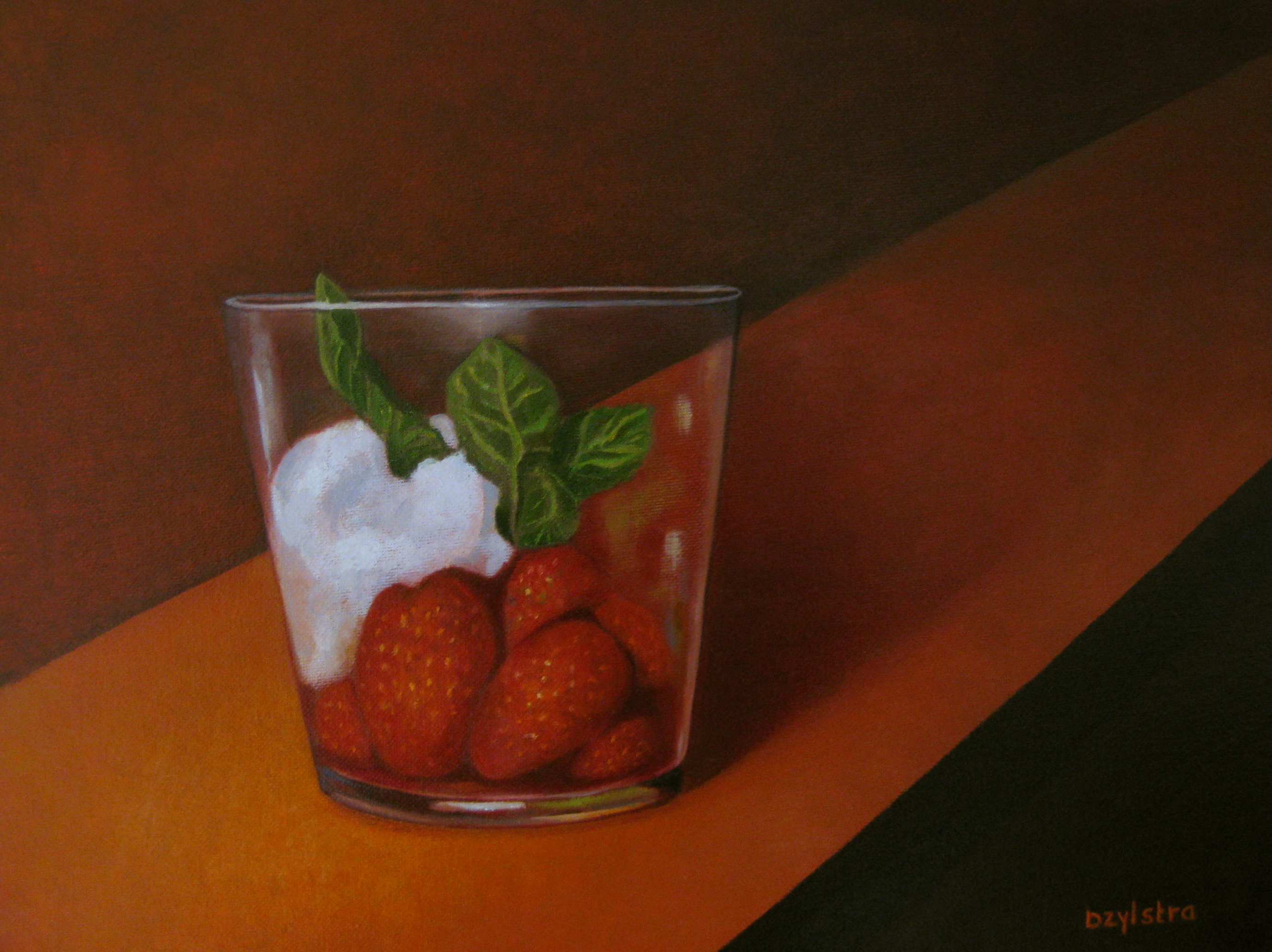Zomaar een glas met aardbeien, omdat ik het zo prachtig vind.