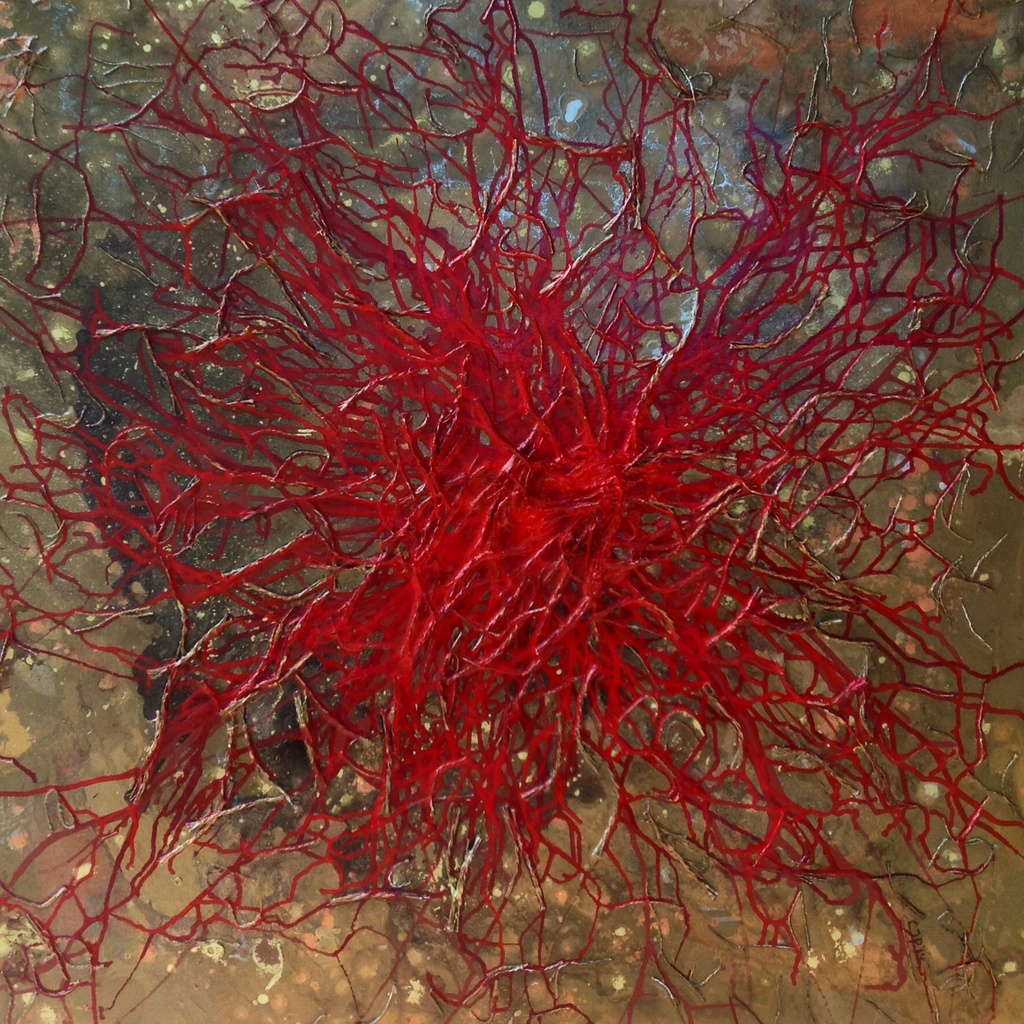 Art Mixed 3d Glitter En Touw Evenwicht Goudverf Spattechniek Randen Meegeschilderd Symmetrisch Koperverf Bronsverf Hennep Drup Textiellijm
