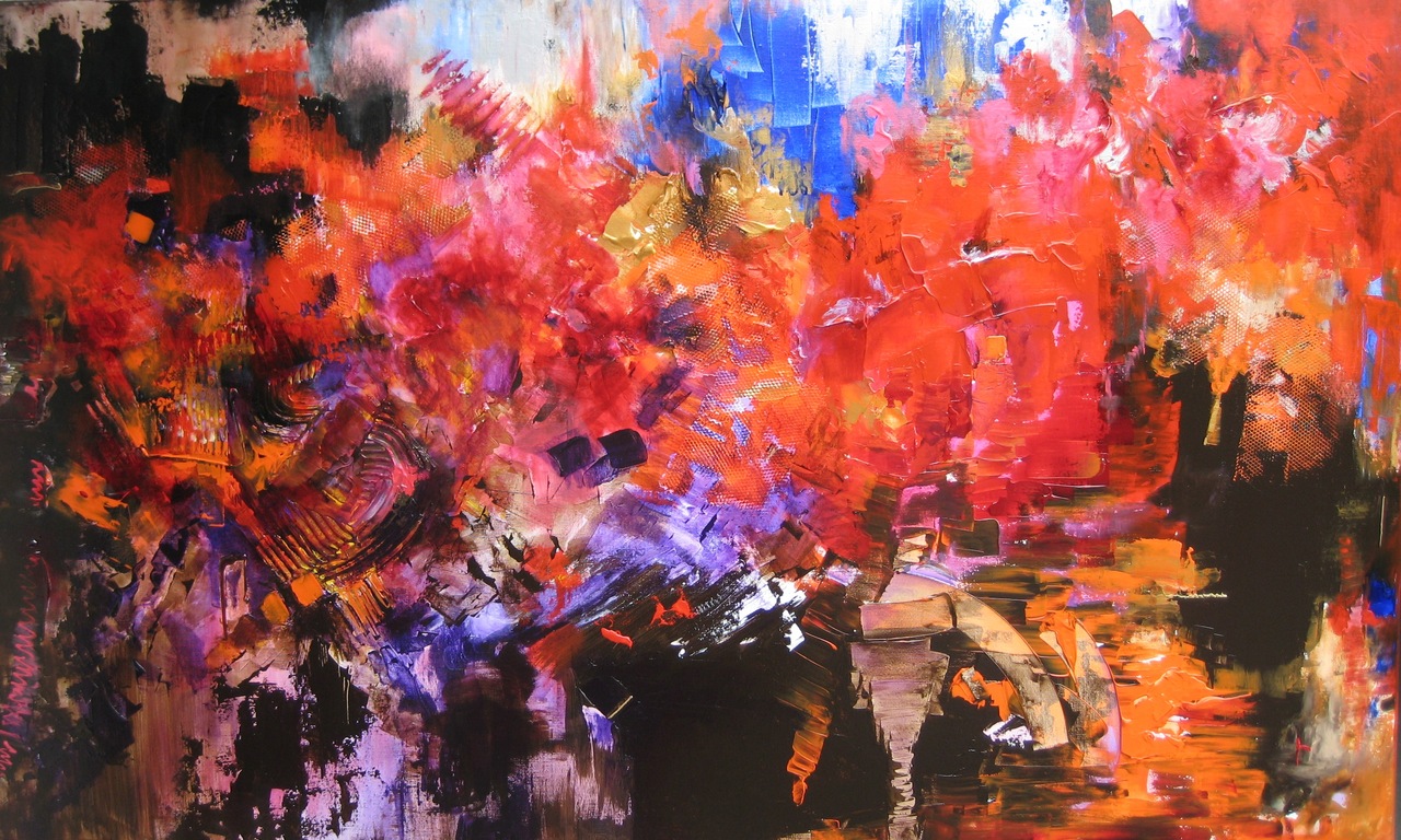 Riny Vroon schildert al vele jaren. Zij werkt zonder te schetsen, spontaan en expressief. Haar doeken prikkelen de verbeelding zodat de kijker er een eigen verhaal van kan maken. Je bespeurt plotseling een rivierbedding, een stadsgezicht of de contouren van bloemen. De harmonie van kleuren is een lust voor het oog.De thema's zijn actueel en herkenbaar voor iedereen.