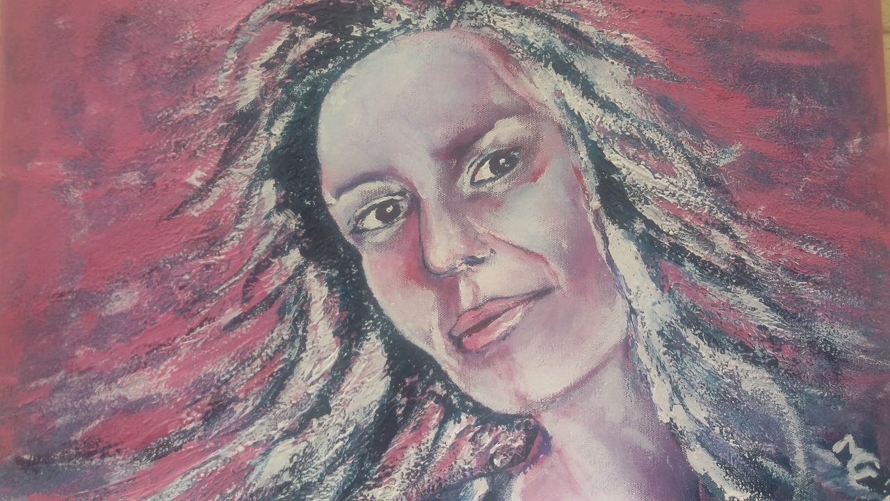 Emotie Acryl Paars Vrouw Portret Roze