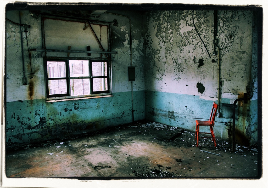 Rode stoel op een verlaten plek