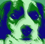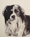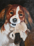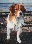 Borduurwerk met als onderwerp mijn kooikerhondje Timo