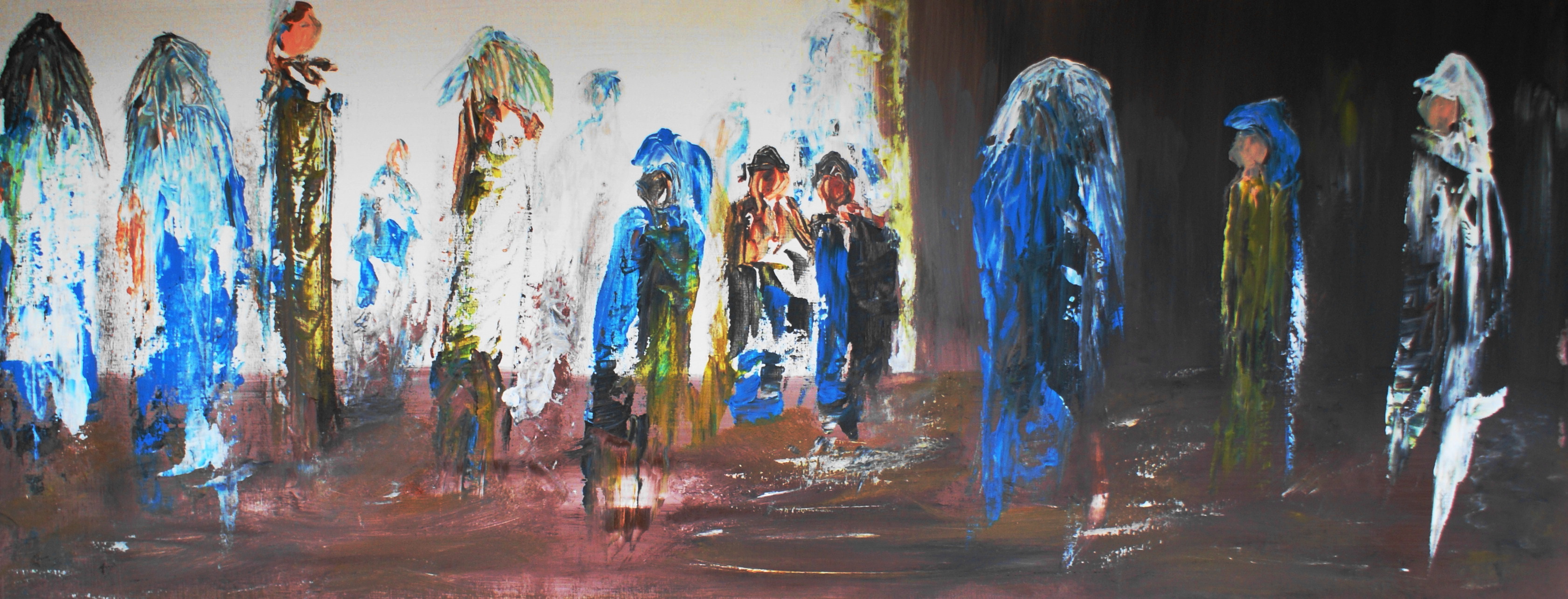 Geabstraheerde figuren, met paletmes geschilderd.
