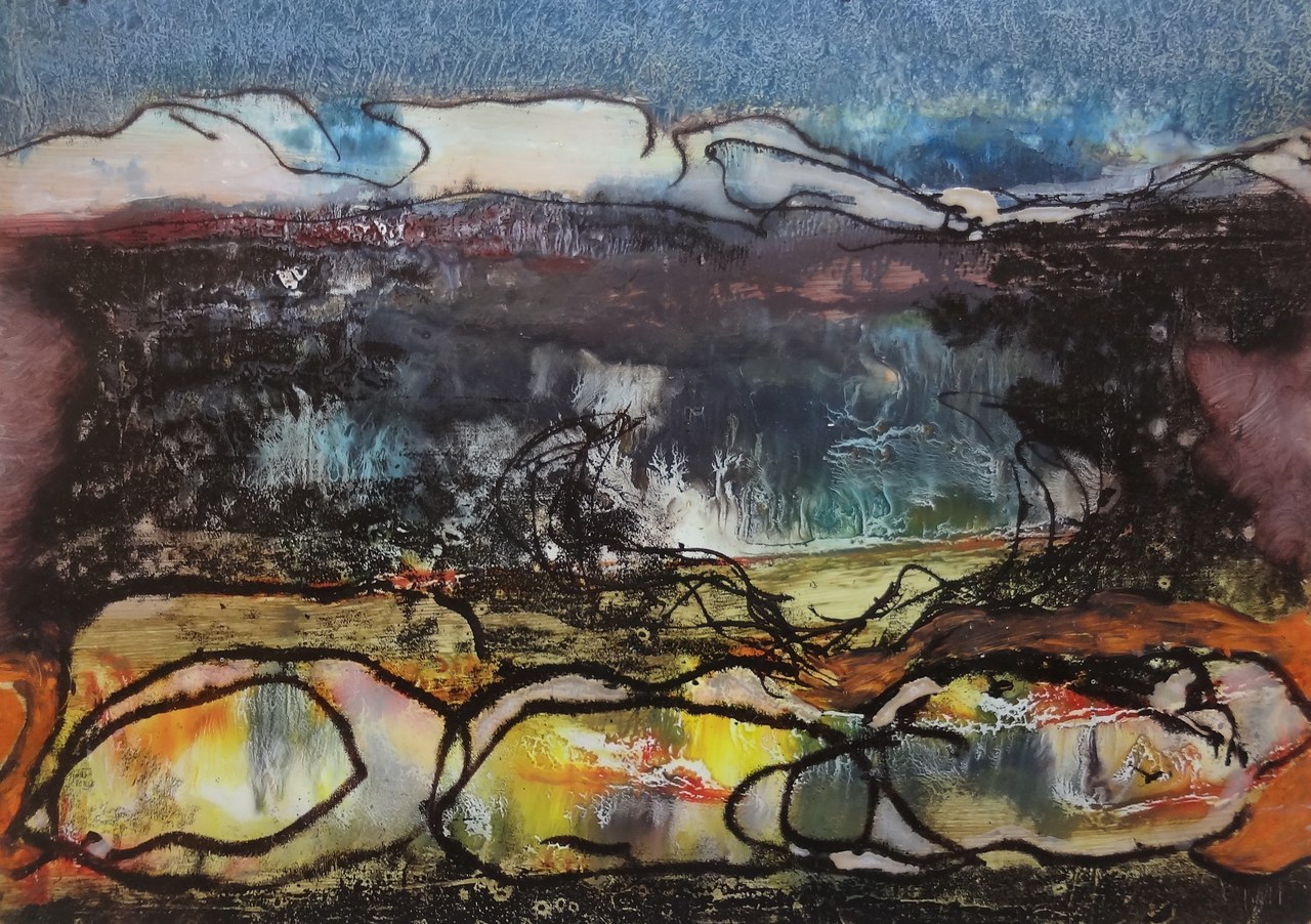 Ik werk impulsief,gedreven en intuïtief.De natuur is mijn grootste inspiratiebron.De landschappen in mijn etsen en monotypes stralen een bepaalde sfeer uit:romantisch,dreigend, verlaten en spannend.Het onderwerp kan beïnvloed worden door iets inspirerends wat op mijn pad komt.Naar aanleiding van een bezoek aan de voorraadkelders van de oude medische instrumentenwinkel van A. van der Kuip te Utrecht,heb ik met dit medisch materiaal zowel ruimtelijk werk,dozen en glazen boxen,als vlak werk gemaakt waaronder monotypes,clichedrukken,collages en tekeningen.