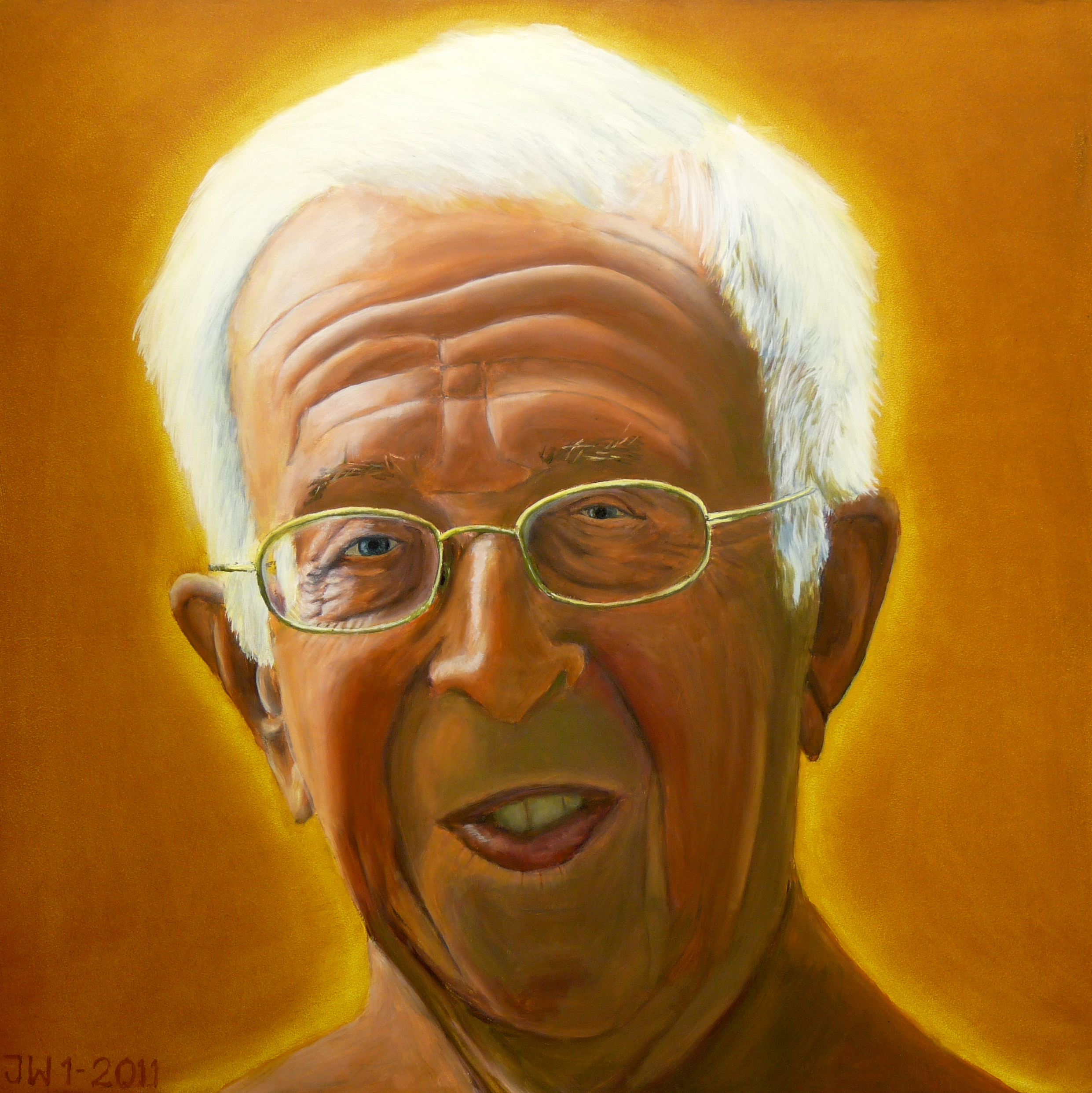 Mijn jongste oom Sjef stierf ruim twee maanden na het overlijden van zijn zusjeMieke (zie mijn schilderij Maria Beata) bij wier uitvaart hij nog aanwezig was. In de zomer daarvoor was hij nog bij mij op een familiereünie geweest. Zodoende had ik foto's die bruikbaar waren als beeldmateriaal voor een portret. Dat moest ik maken.