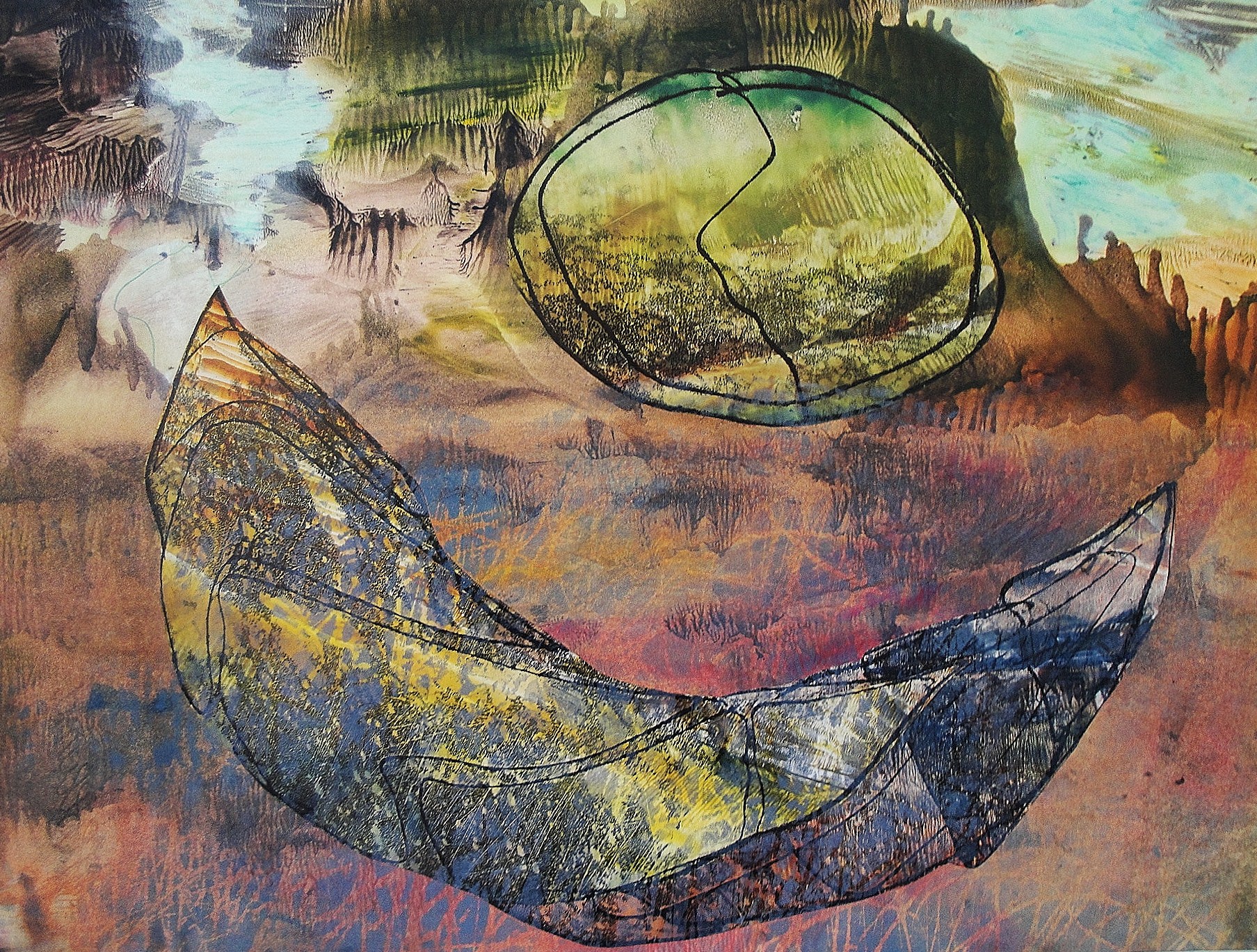 Ik werk impulsief,gedreven en intuïtief.De natuur is mijn grootste inspiratiebron.De landschappen in mijn etsen en monotypes stralen een bepaalde sfeer uit:romantisch,dreigend, verlaten en spannend.Het onderwerp kan beïnvloed worden door iets inspirerends wat op mijn pad komt.Naar aanleiding van een bezoek aan de voorraadkelders van de oude medische instrumentenwinkel van A. van der Kuip te Utrecht,heb ik met dit medisch materiaal zowel ruimtelijk werk,dozen en glazen boxen,als vlak werk gemaakt waaronder monotypes,clichedrukken,collages en tekeningen.