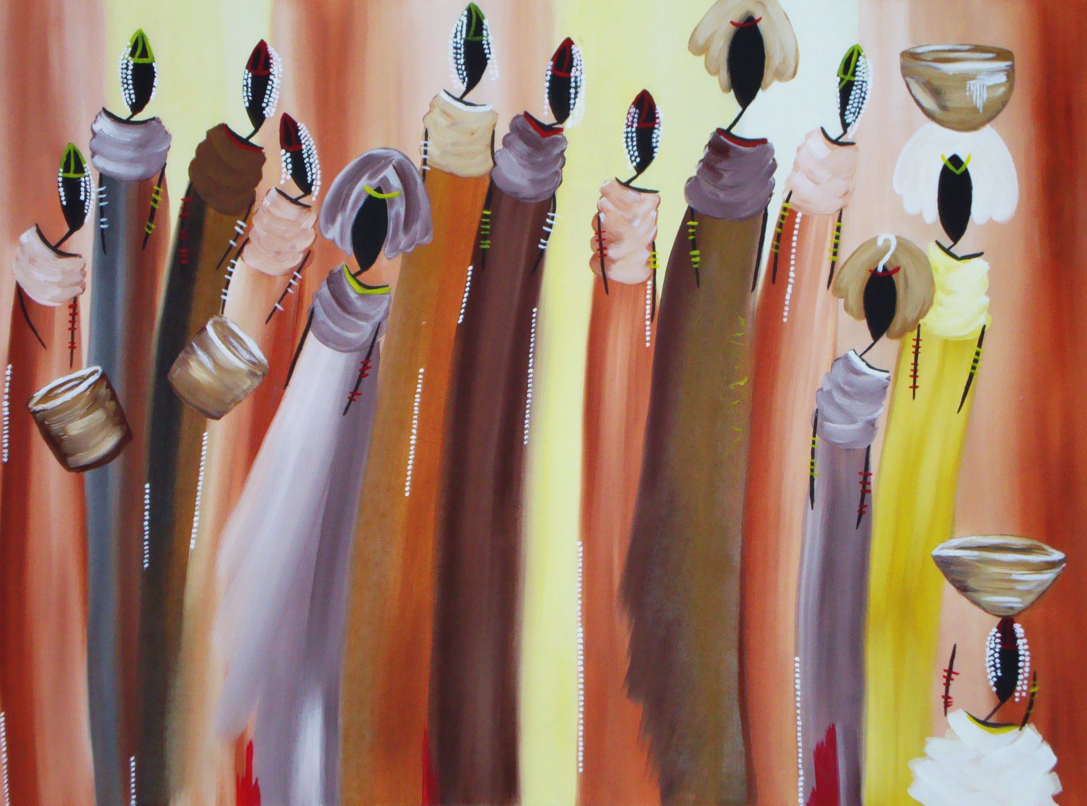 Vakantie Zuid-afrika Olieverf Vrouwen Aan Het Werk Abstract