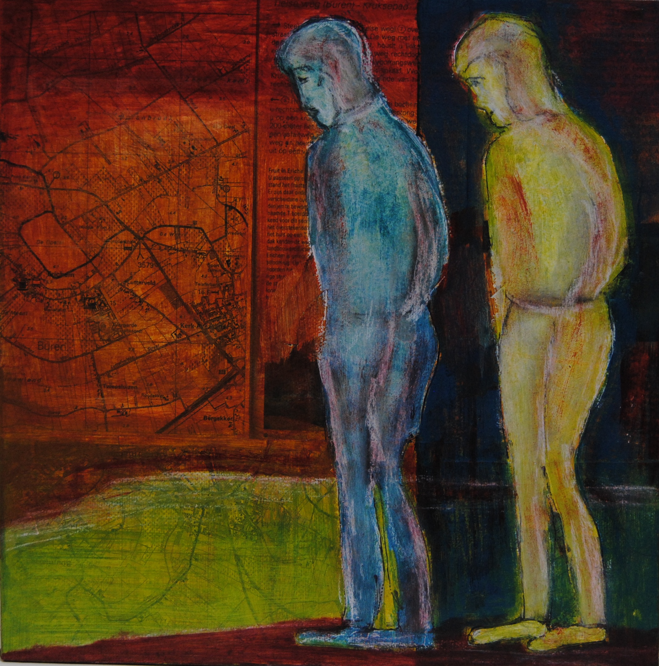 Schilderij gemaakt met papier en acrylverf op canvasdoek