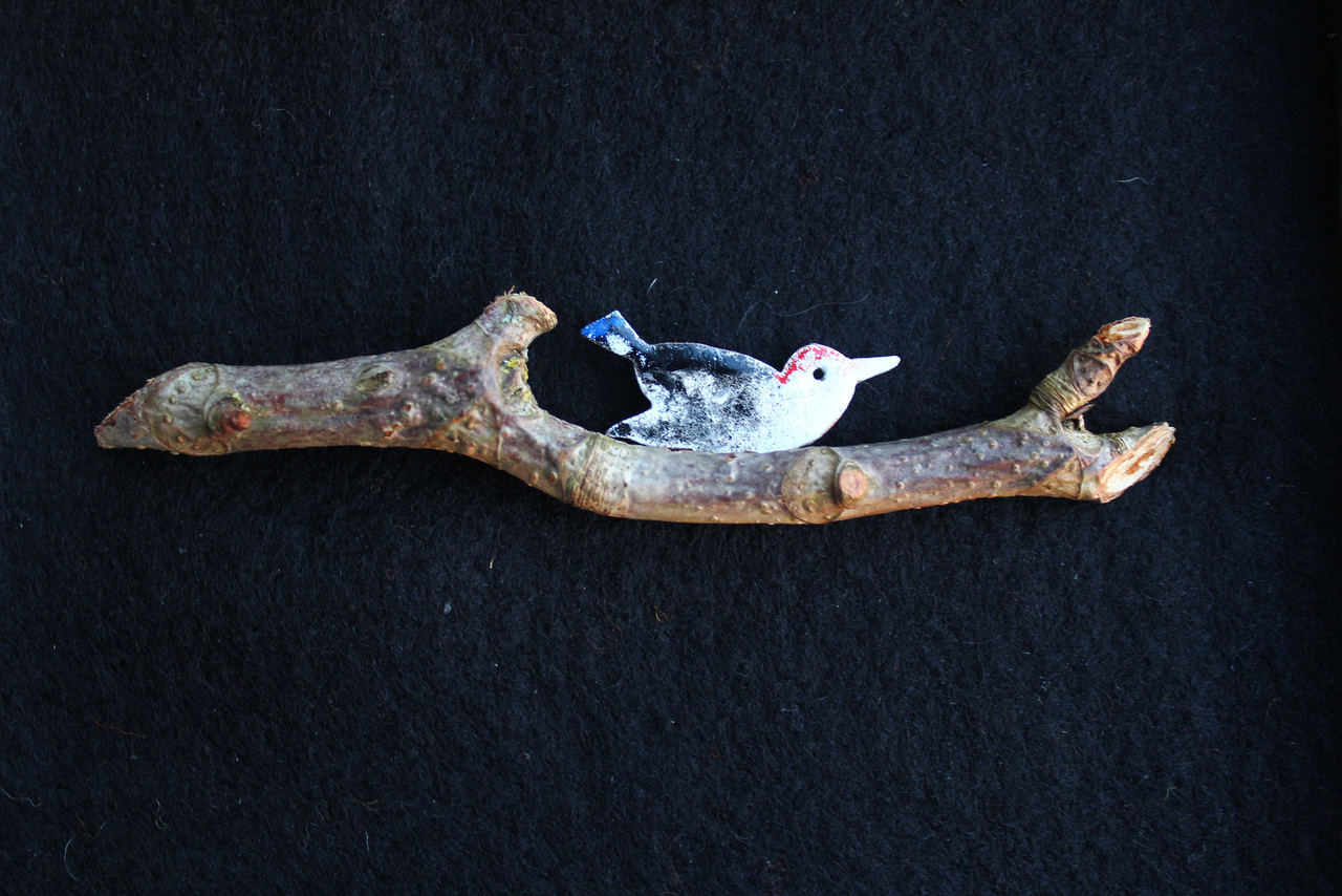 Essentak met geemailleerde vogel