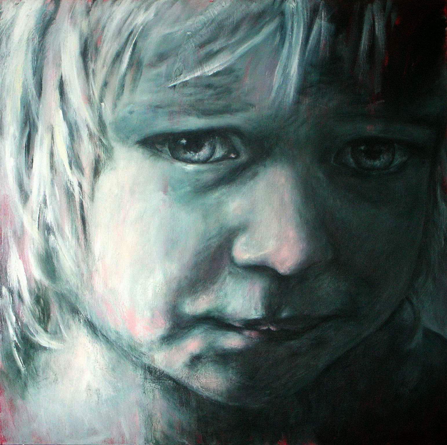 Schilderij Wit Zwart Rose Kind Portret Ogen Groot Jongen Blond Opdracht