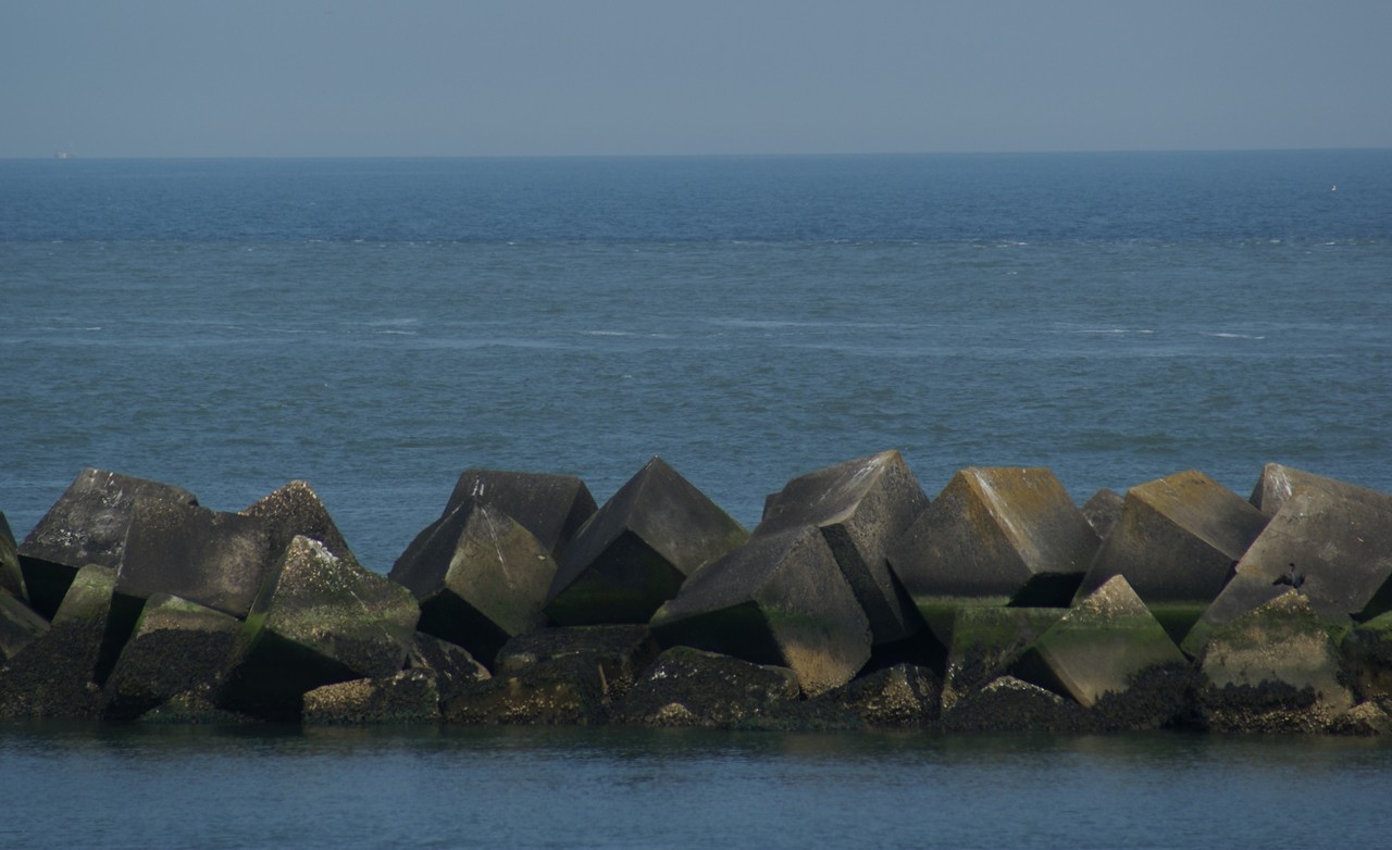 Blokkendammen die de ingang van een haven of rivier beschermen tegen zware golfslag en waterstromingen