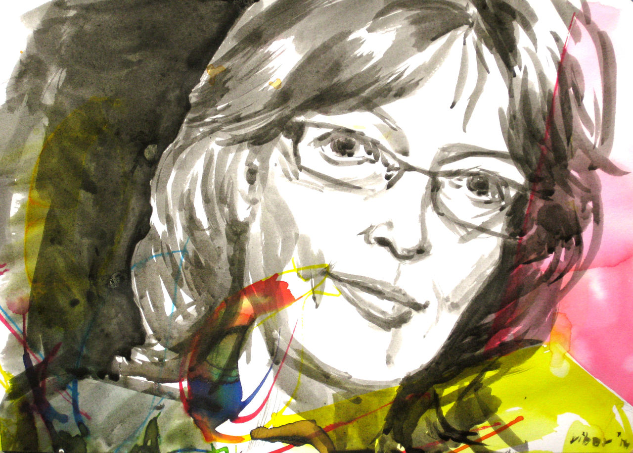 Oostindische inkt over ecoline, i.h. kader v.d. FB Selfportrait Drawing Community