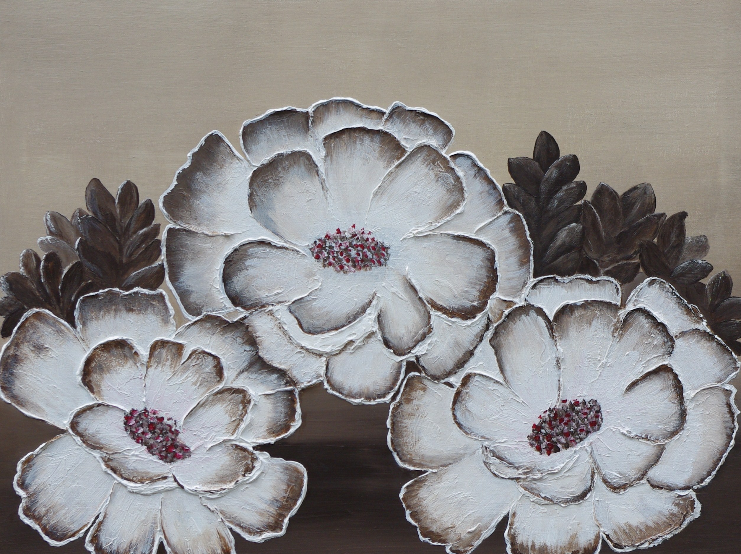 witte annemonen in acryl in rustige kleuren