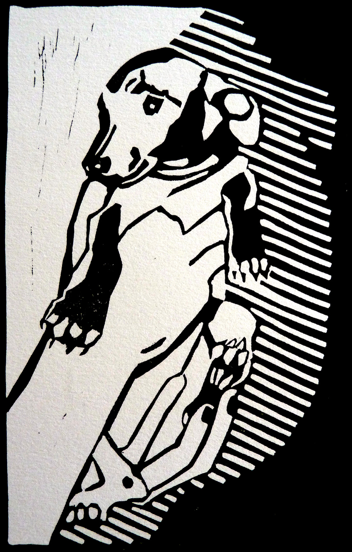Realistisch Italian Italiaans Handen Grafiek Hond Black Hands Pup Dog Print Windhond Greyhound Realistic Linosnede Linocut Zwart-wit