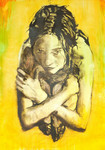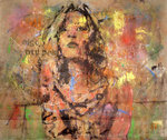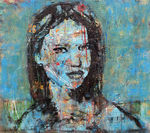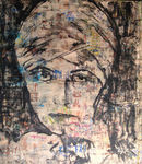 Portret van koningin Beatrix, geschilderd op een oude PTT postzak.