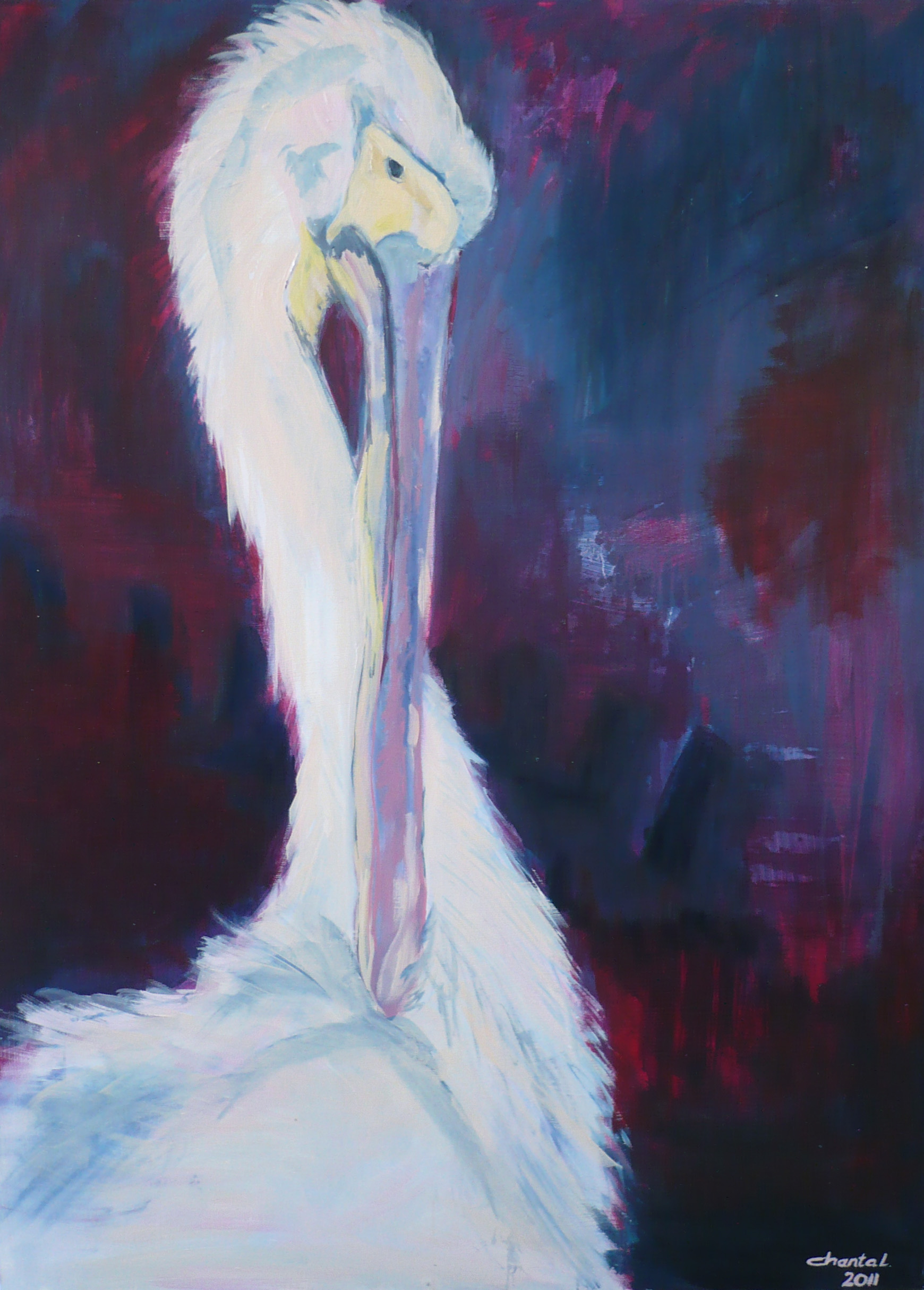Blauw Vogel Kleurrijk Olieverf Roze Pelikaan Gelaagdheid Realistsch