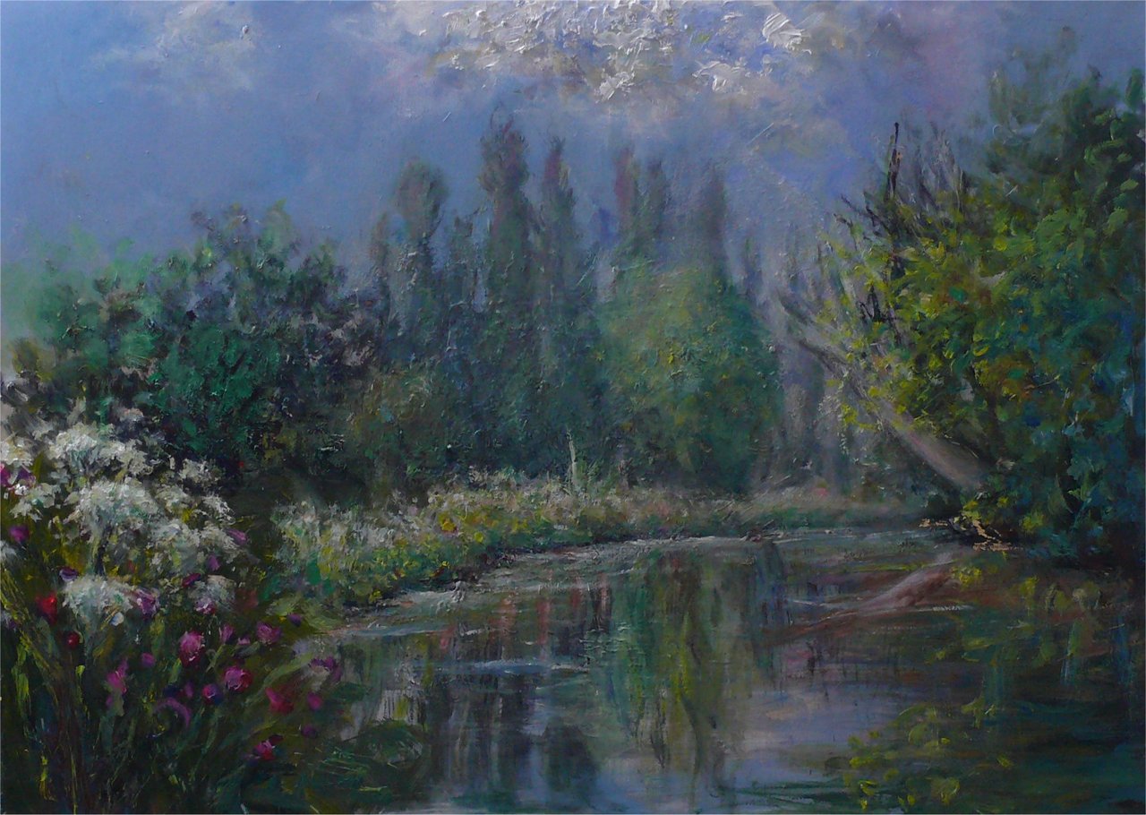 kromme rijn bij rhijnauwen, plein-air geschilderd.