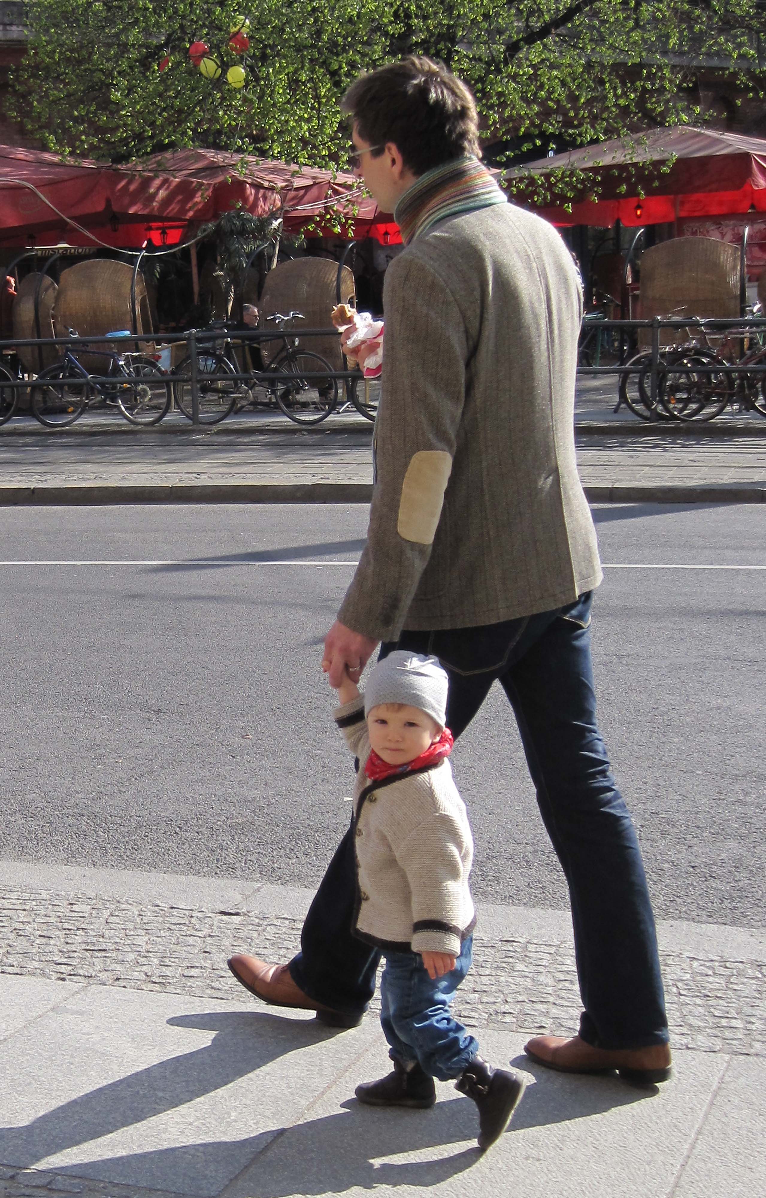 Vader en zoon wandelen (Berlijn, Duitsland).