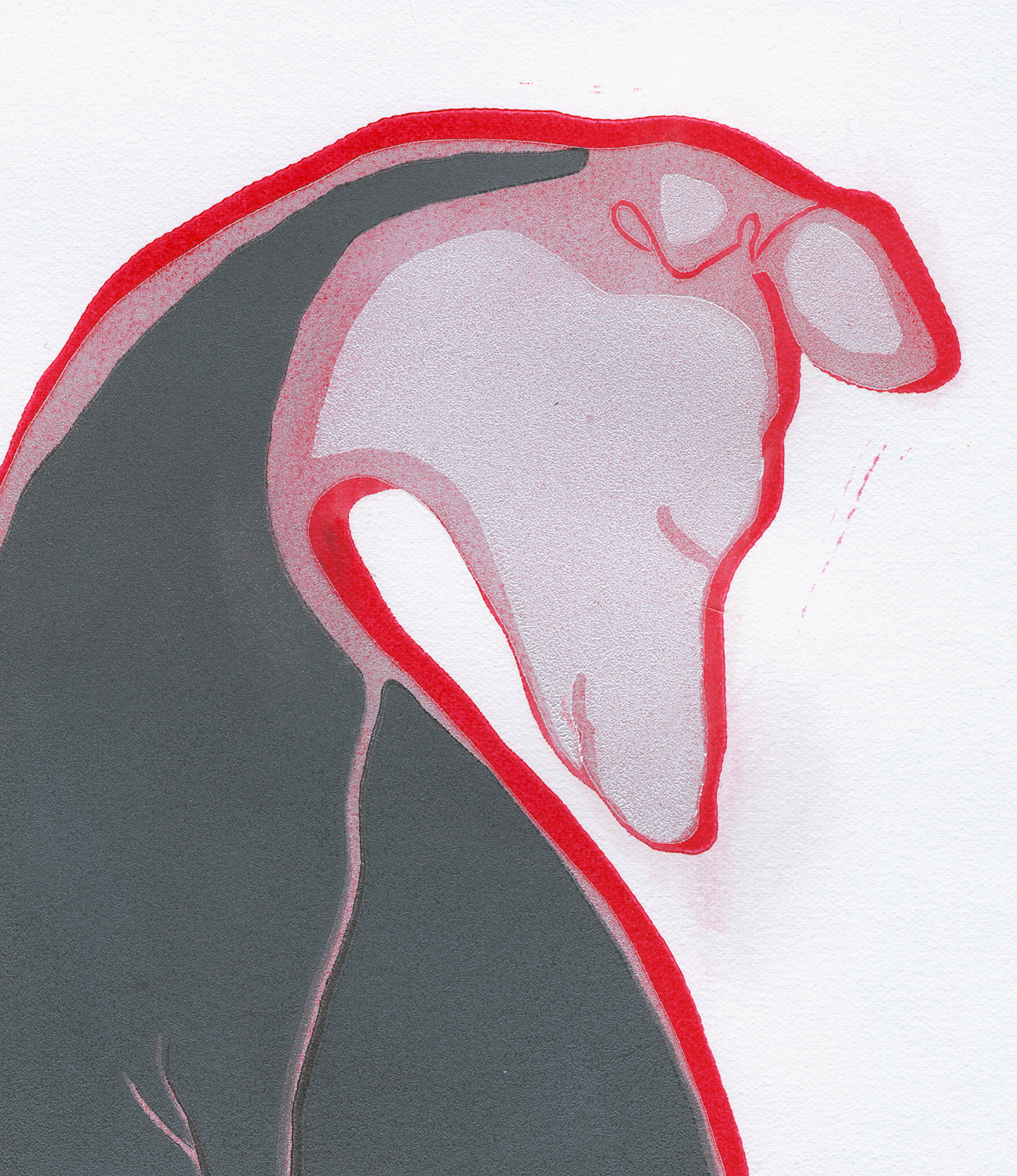 Grijs Kop Roze Italian Hond Dog Pink Windhond Greyhound Grey Linocut Linoleumsnede Kleurendruk Colourprint