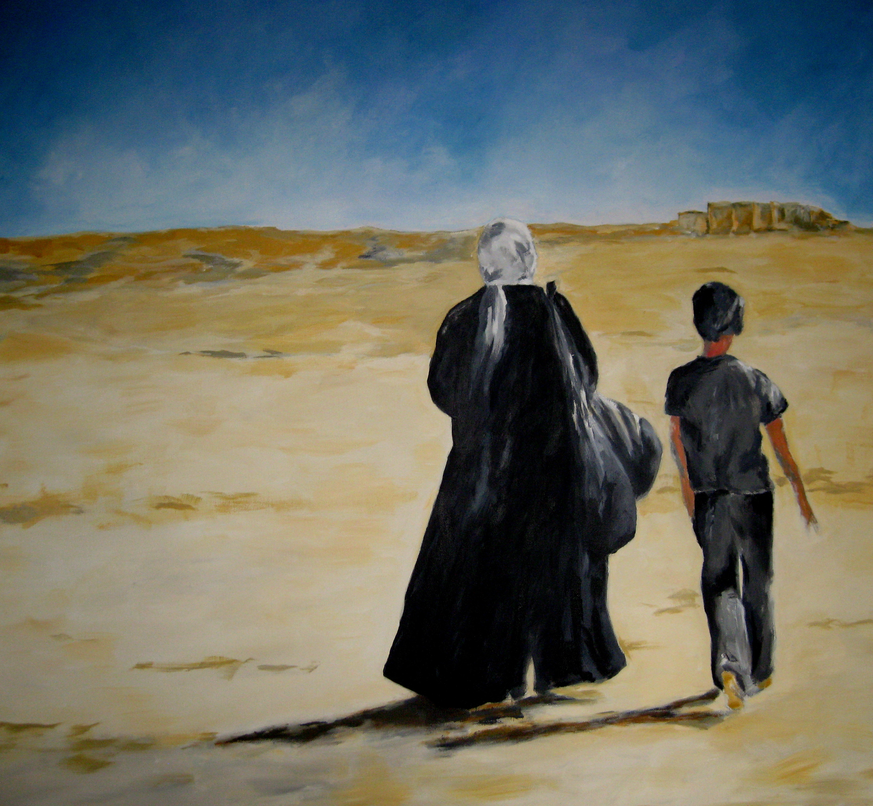 Vertrek Afscheid Vlucht Moeder En Kind Vluchtelingen Woestijn