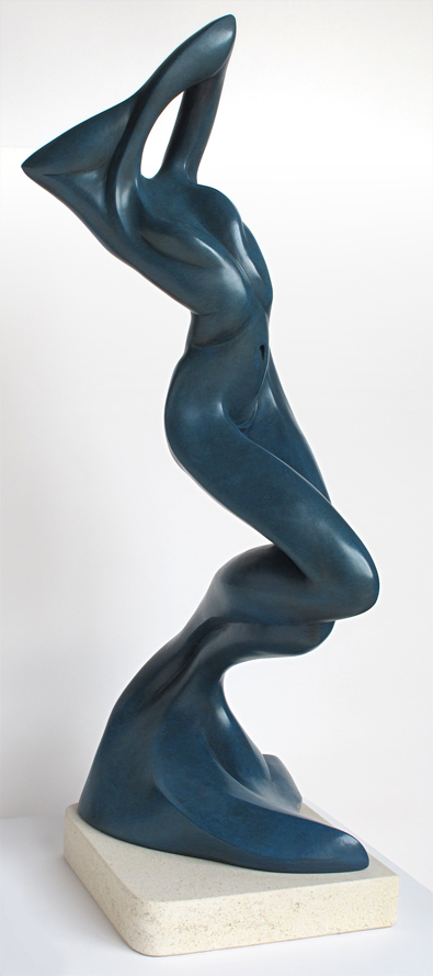 Blauw Dans Vrouw Naakt Model Lichaam Beeld Figuur Torso Beweging Vrouwelijk Keramiek Vrijheid Gestileerd Staalblauw